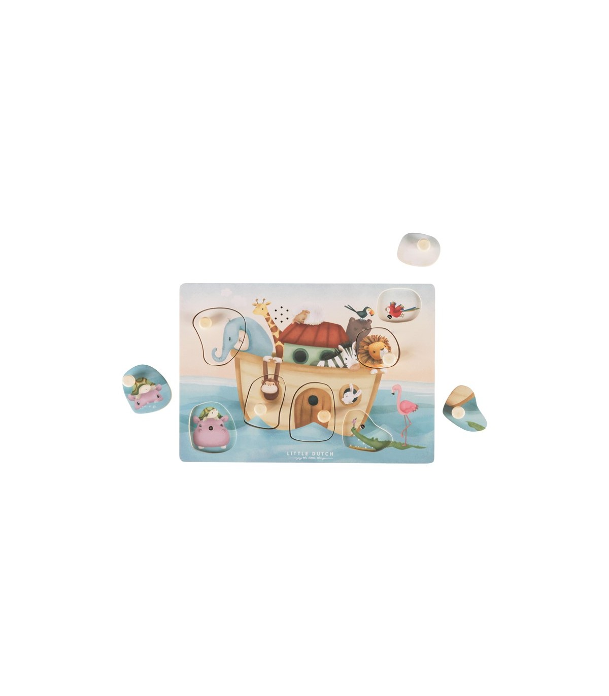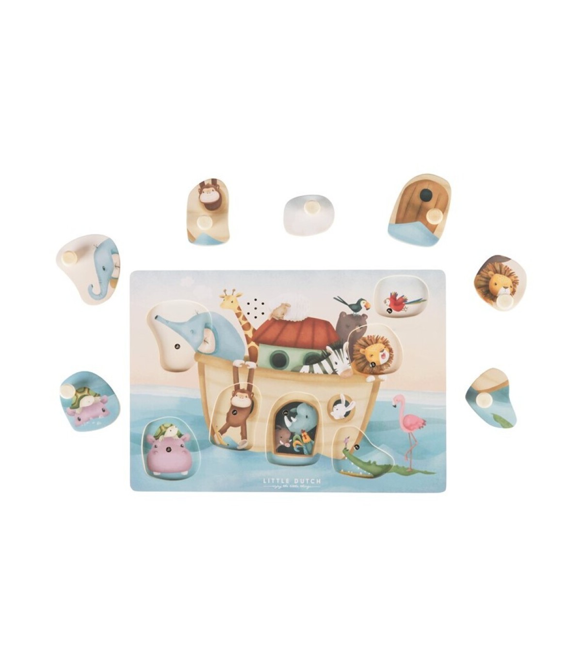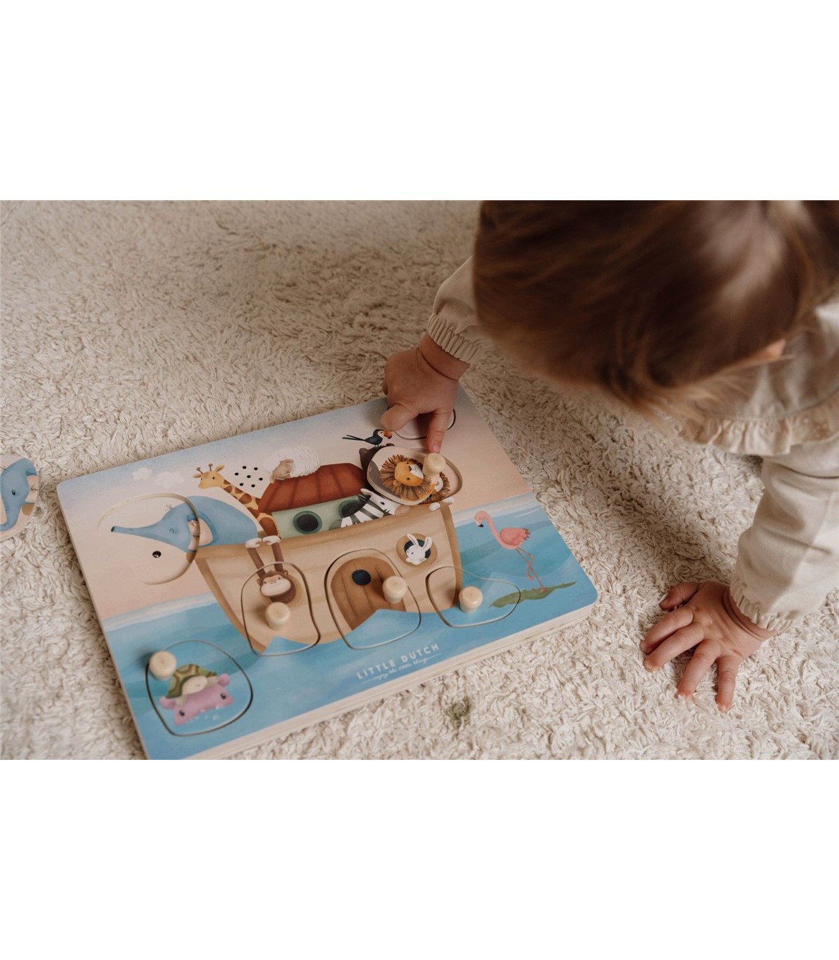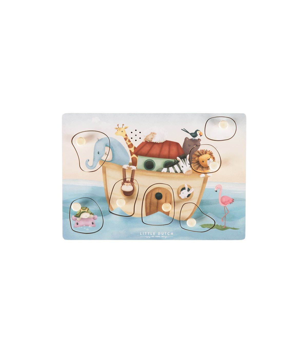 ¿Qué animales puedes encontrar en el Arca de Noé? Levanta las piezas del puzle y descubre uno por uno los sonidos de los animales. Al cocodrilo le gusta estar cerca del barco para atrapar algún pez, ¿sabes quién se esconde detrás de la puerta? Este divertido puzle con 7 sonidos diferentes alienta la coordinación y el vocabulario. Los sensores reaccionan cuando las piezas del puzle se levantan. Viene SIN pilas AAA.