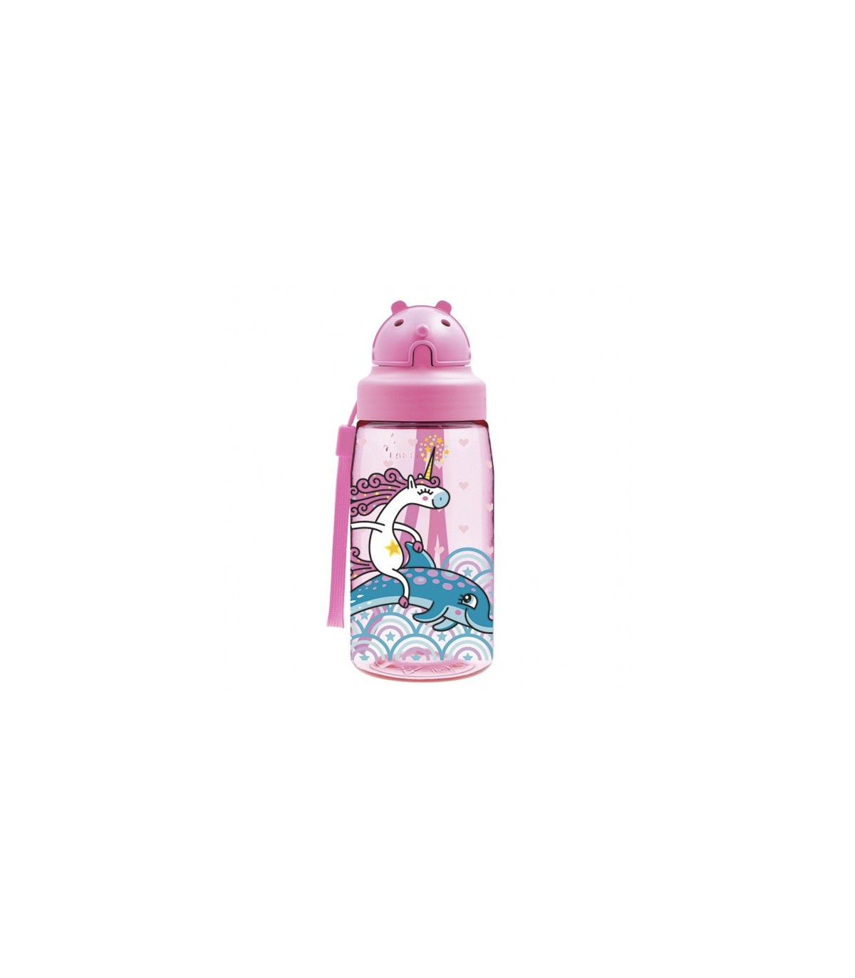 Botella infantil de Tritán equipada con el nuevo tapón OBY, perfecto para que puedan abrirlo y cerrarlo los peques sin ninguna ayuda. Dispone de una pajita en el interior que llega hasta el fondo de la botella para que no sea necesario alzarla para poder beber. Completamente hermética, muy ligera y libre de sustancias nocivas. ¿Hay algo más veraniego que un unicornio surfeando en delfín? by Txema Sanz.