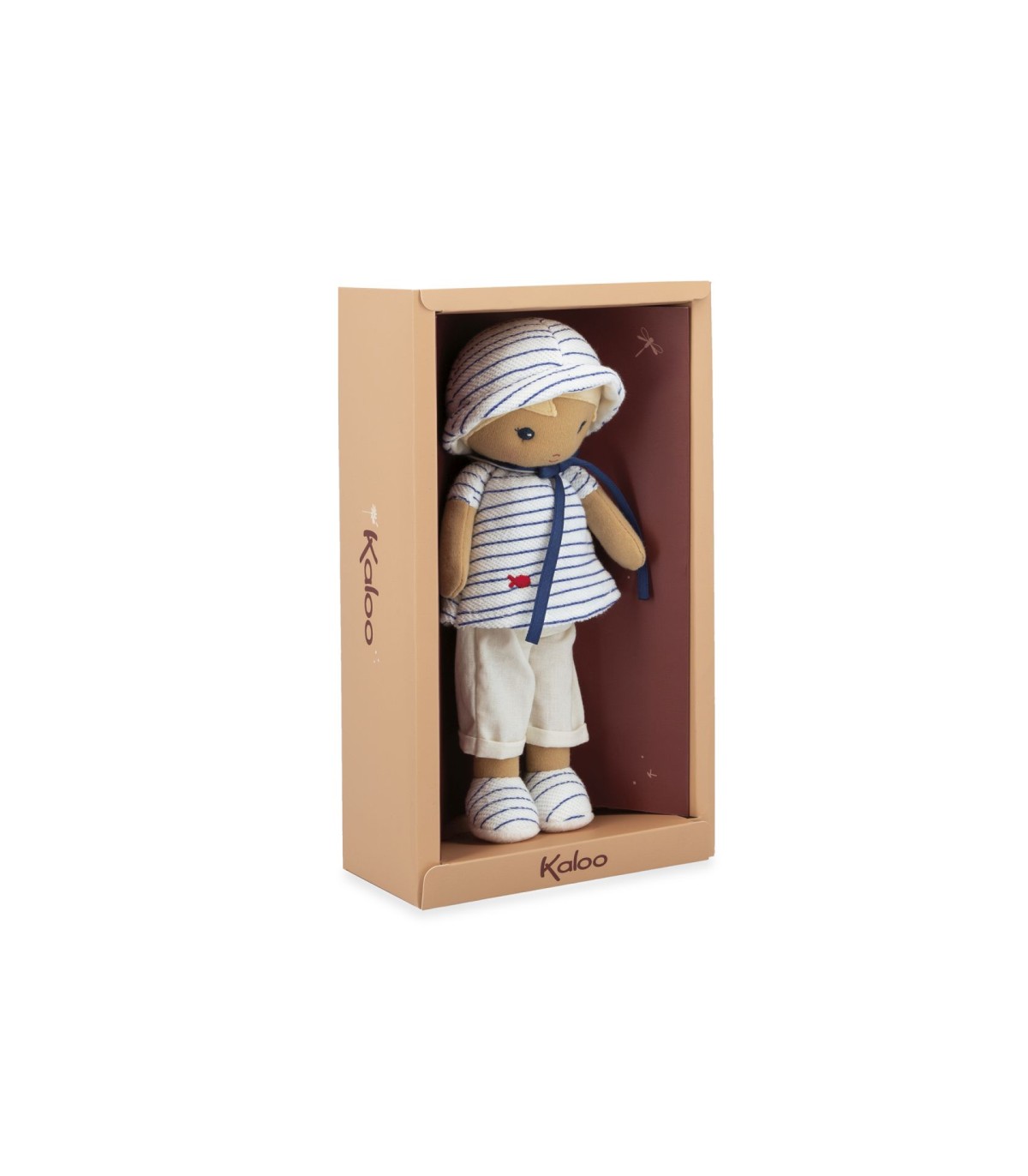 Su delicado bordado de pez recuerda al mar y al océano, allí donde ella prefiere divertirse. Sus pantalones bombachos son fáciles de agarrar para las manos aún torpes de los más pequeños. Gracias a su elegante sombrero, no le teme a las quemaduras solares. Alrededor de su cuello, tiene una bonita cinta en la que se puede escribir el nombre del bebé. El tamaño de esta muñeca para bebé hace que sea ideal para abrazarla, las pequeñas manos del bebé también podrán agarrarla fácilmente por los brazos o las piernas. La muñeca Eli está fabricada con poliéster y algodón. Se puede lavar a máquina a 30° y se presenta en una bonita caja, para un regalo de recién nacido lleno de Ternura.