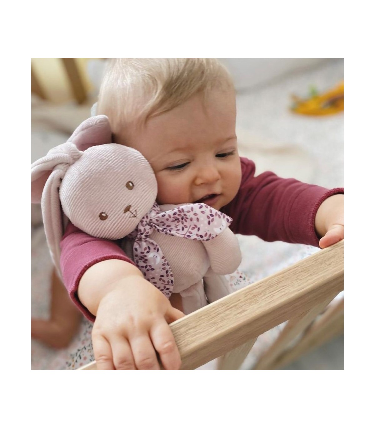 Este alegre conejito rosa tiene las orejas tan largas que se puede enganchar en cualquier lugar para guardarlo y no perderlo nunca. Se puede hacer de todo con él: el pino, el columpio, se puede colgar en la cuerda de la ropa e, incluso, balancearse a la luz de la luna. Con sus largas orejas, envuelve a los bebés con suaves abrazos y comparte con ellos momentos de ternura. Lavable a máquina. Presentado en una bonita caja de regalo personalizable con un mensaje en el espacio disponible bajo la tapa.