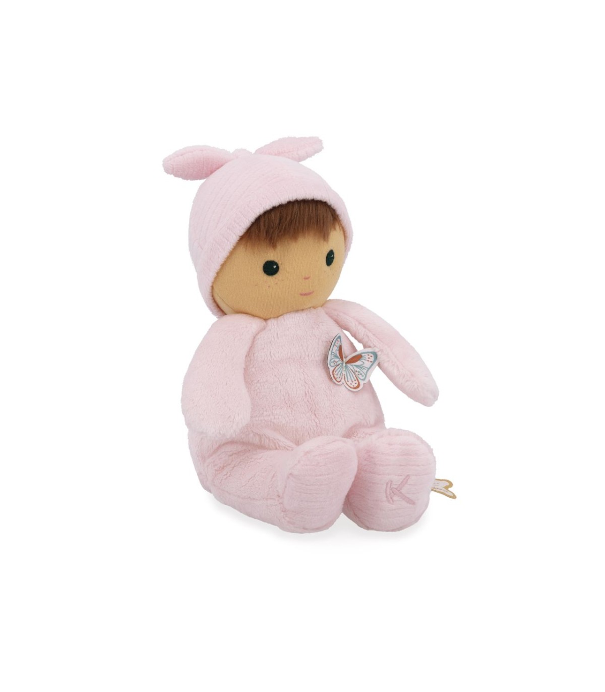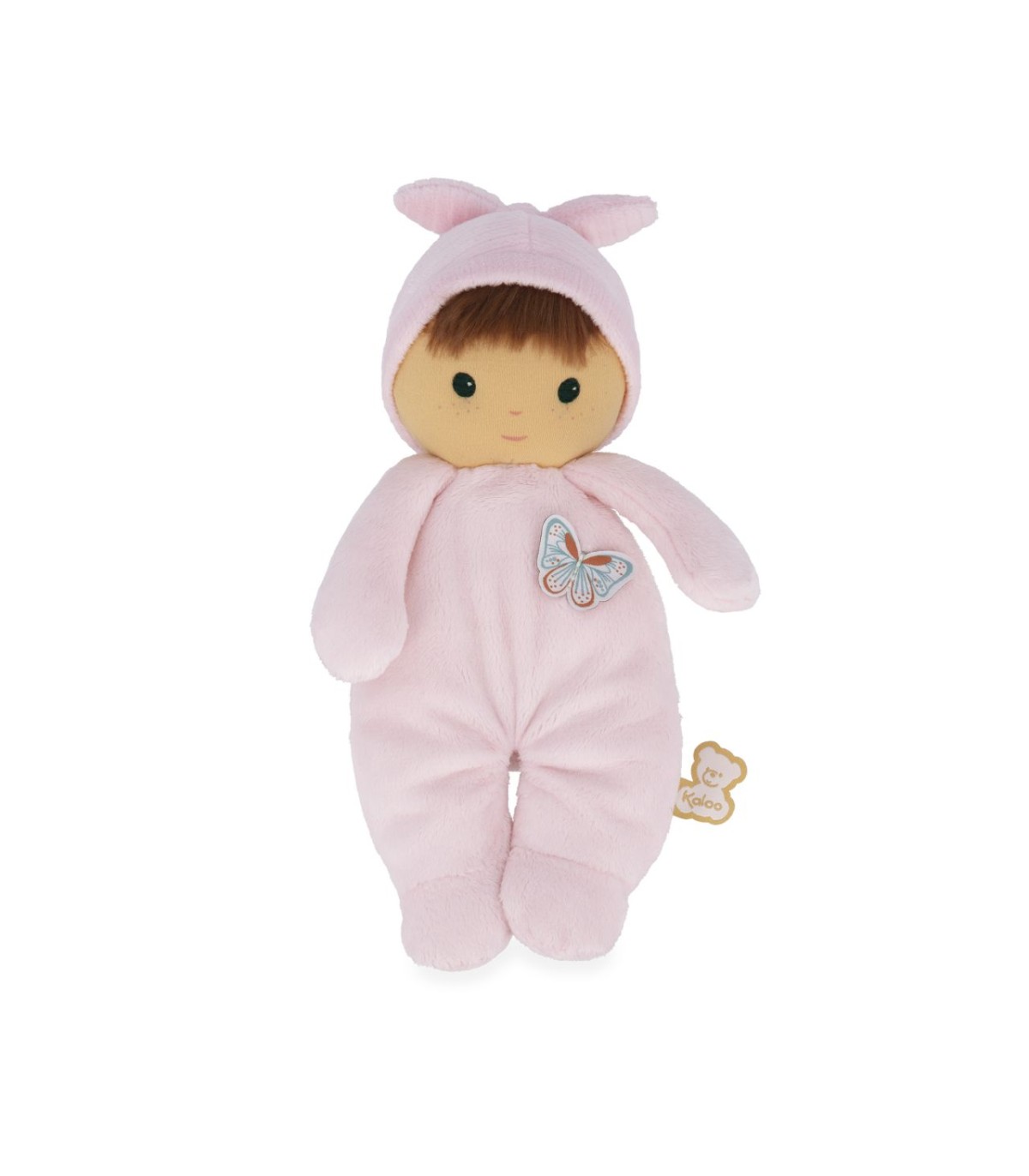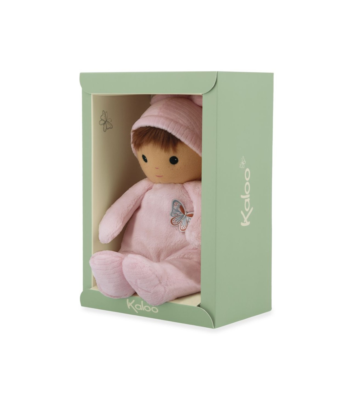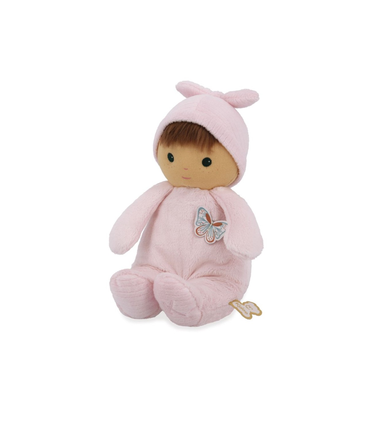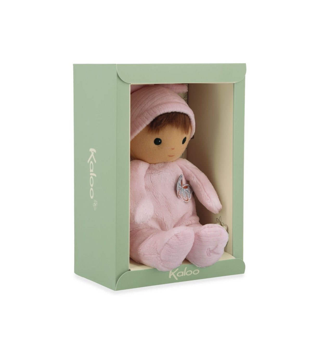 Inspirado en la flor, símbolo del cariño, la camelia, es el regalo ideal para expresar admiración, armonía y resiliencia. La camelia es una flor apreciada por su robustez y su capacidad de florecer en invierno, como vínculo duradero entre bebé y padres. El torso de esta pequeña muñeca rosa está decorado con una delicada mariposa, que recuerda la ligereza y la gracia de las flores: un detalle pensado para darle un toque extra de poesía. La etiqueta con forma de mariposa es una invitación a desarrollar la destreza y la curiosidad sensorial del bebé. Cada abrazo con Bébé Camelia estimula suavemente los sentidos y favorece el desarrollo táctil de los niños pequeños. Su adorable gorro anudado es un elemento más para explorar con la yema de los dedos.