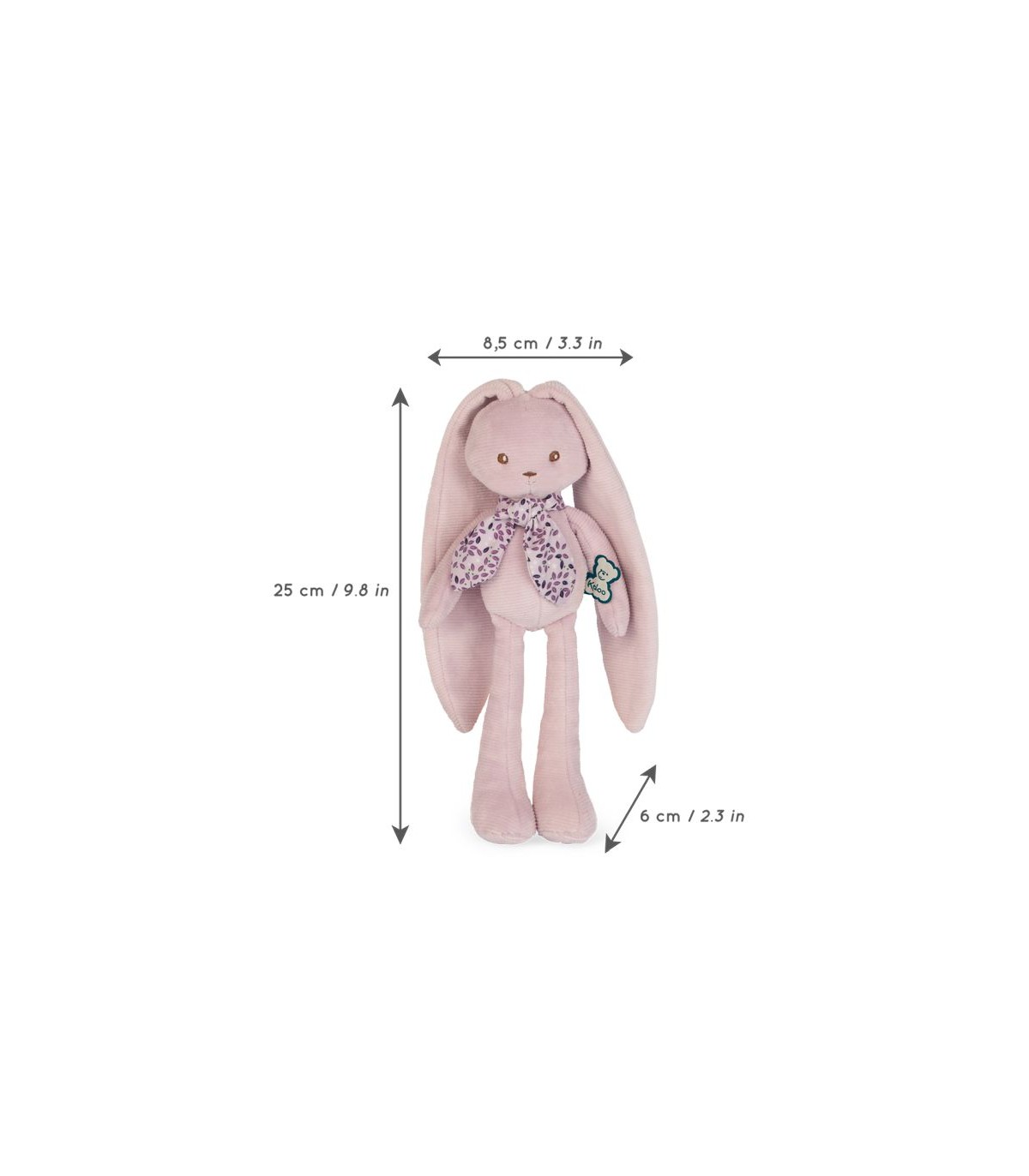 Este alegre conejito tiene las orejas tan largas que se puede enganchar en cualquier lugar para guardarlo y no perderlo nunca. Se puede hacer de todo con él: el pino, el columpio, se puede colgar en la cuerda de la ropa e, incluso, balancearse a la luz de la luna. Con sus largas orejas, envuelve a los bebés con suaves abrazos y comparte con ellos momentos de ternura. Lavable a máquina. Presentado en una bonita caja de regalo personalizable con un mensaje en el espacio disponible bajo la tapa.