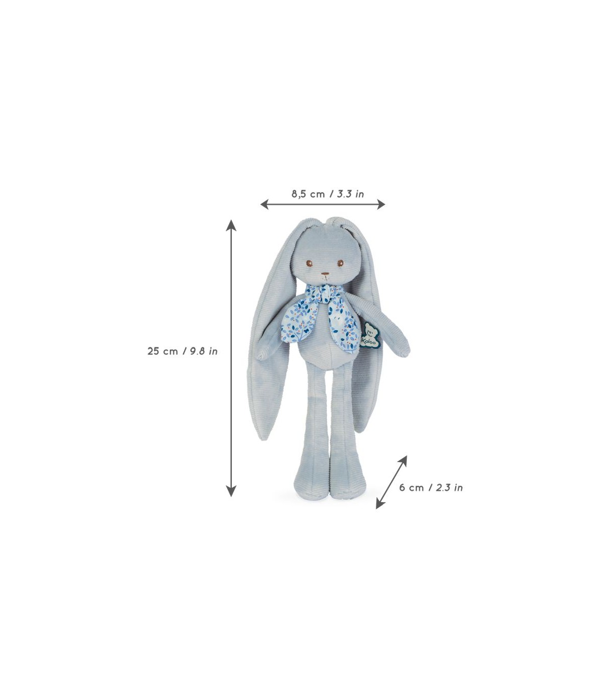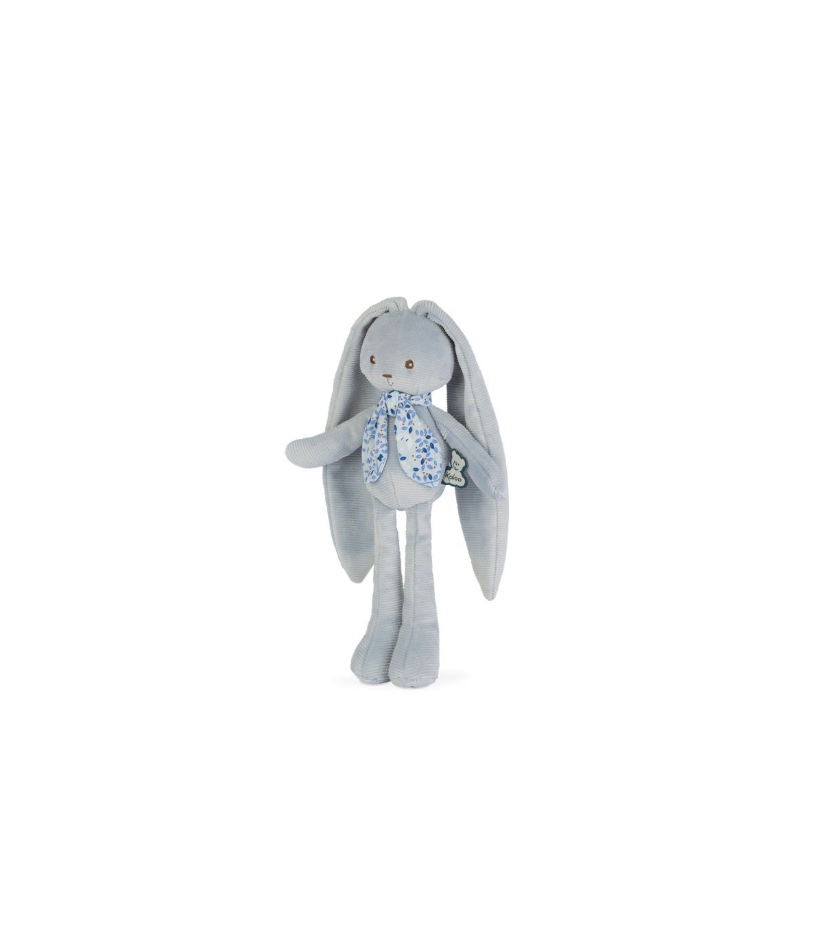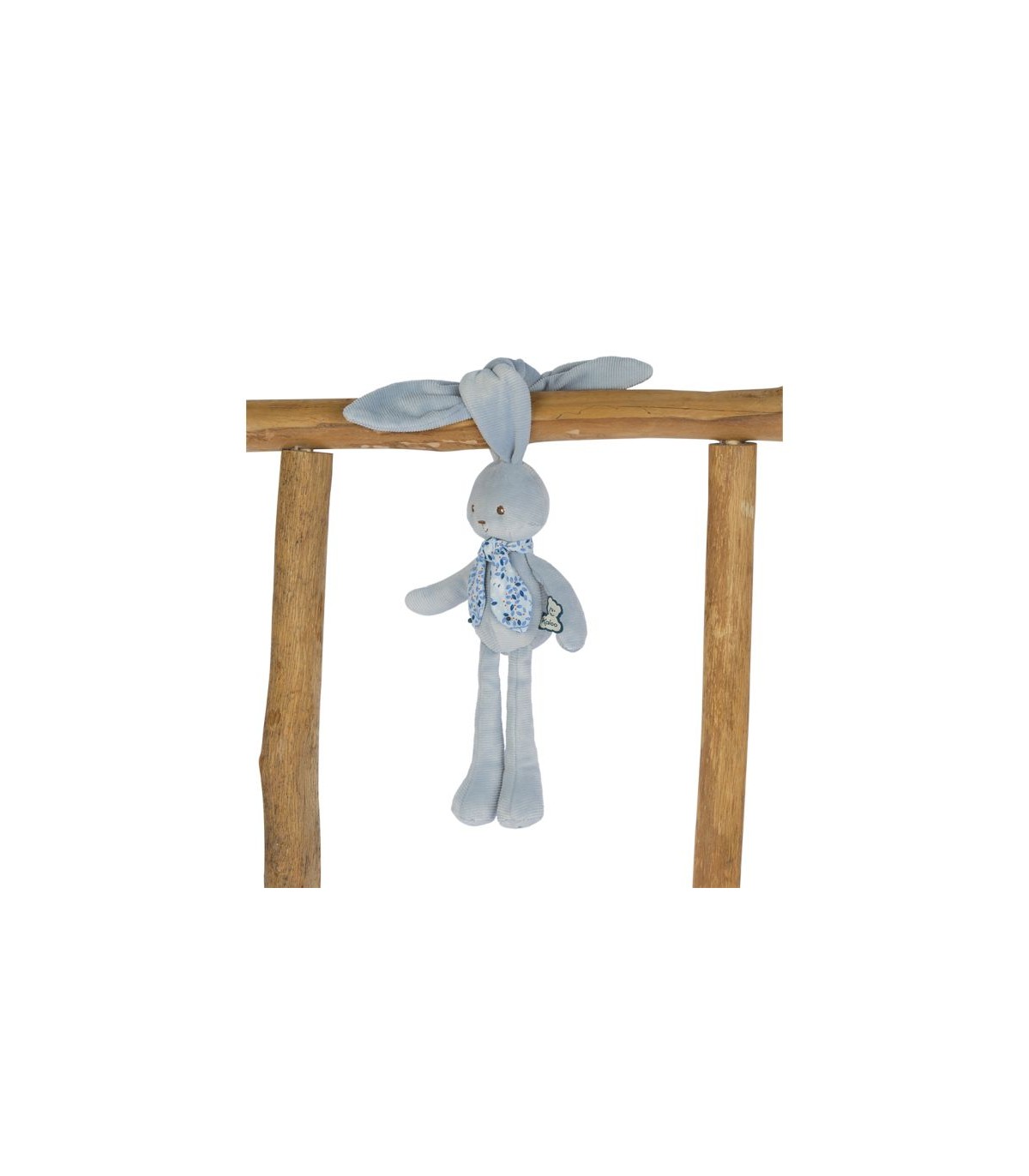 Este alegre conejito azul tiene las orejas tan largas que se puede enganchar en cualquier lugar para guardarlo y no perderlo nunca. Se puede hacer de todo con él: el pino, el columpio, se puede colgar en la cuerda de la ropa e, incluso, balancearse a la luz de la luna. Con sus largas orejas, envuelve a los bebés con suaves abrazos y comparte con ellos momentos de ternura. Lavable a máquina. Presentado en una bonita caja de regalo personalizable con un mensaje en el espacio disponible bajo la tapa.