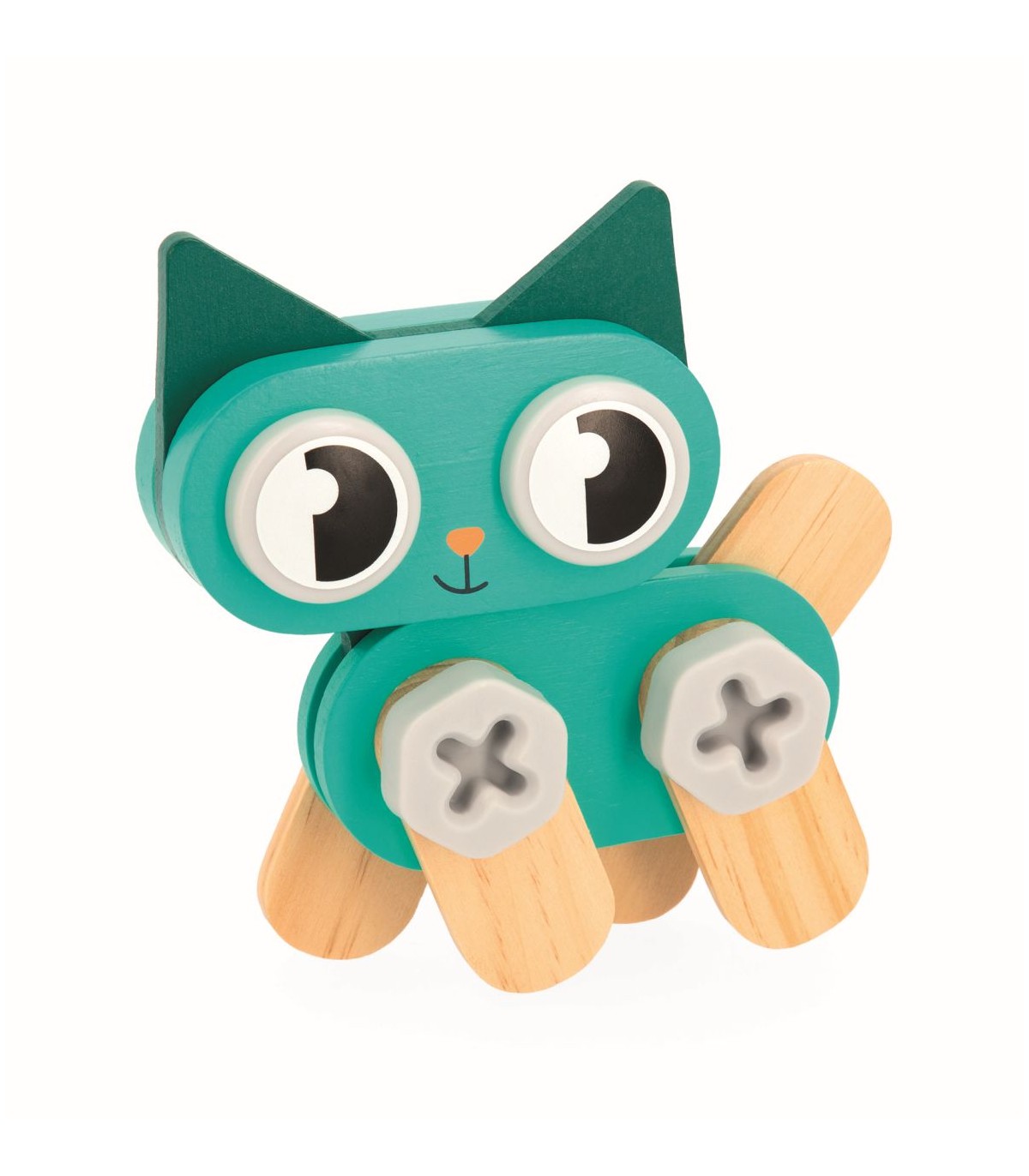 El gato y el conejo constan de 16 piezas cada uno y el perro de 18 piezas. Para disfrutar de forma independiente de su juego de construcción de animales, los niños pueden utilizar los 3 ejemplos incluidos: ¡uno por animal! Tanto si son aficionados al bricolaje como amantes de los animales, los niños disfrutarán montando a sus compañeritos una y otra vez. Desarrollarán la destreza y la lógica al ensamblar las piezas e imitarán con entusiasmo a los adultos utilizando sus propias herramientas. Los tornillos tienen muescas para imitar a los de verdad y la tornillería de plástico es más fácil de manejar con sus manitas.