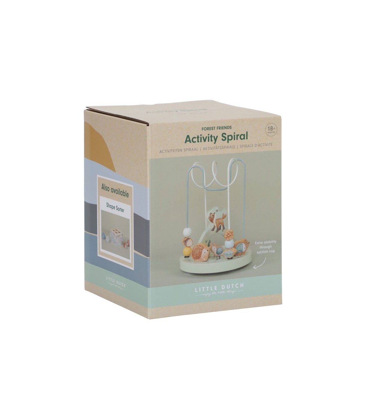 Guía las cuentas de izquierda a derecha a través del mundo encantado de Forest Friends. En el camino, conocerás al simpático zorro, el erizo, el escarabajo y el pequeño caracol que viven y juegan en el bosque. Deslízalos de un lado a otro para descubrir las sabrosas bellotas, las hojas exuberantes y las piñas que se esconden entre las raíces de los árboles. ¡Que comience el viaje y observa cómo se dispara la imaginación! Esta espiral de actividades de madera ofrece una experiencia educativa y encantadora para tu pequeño.