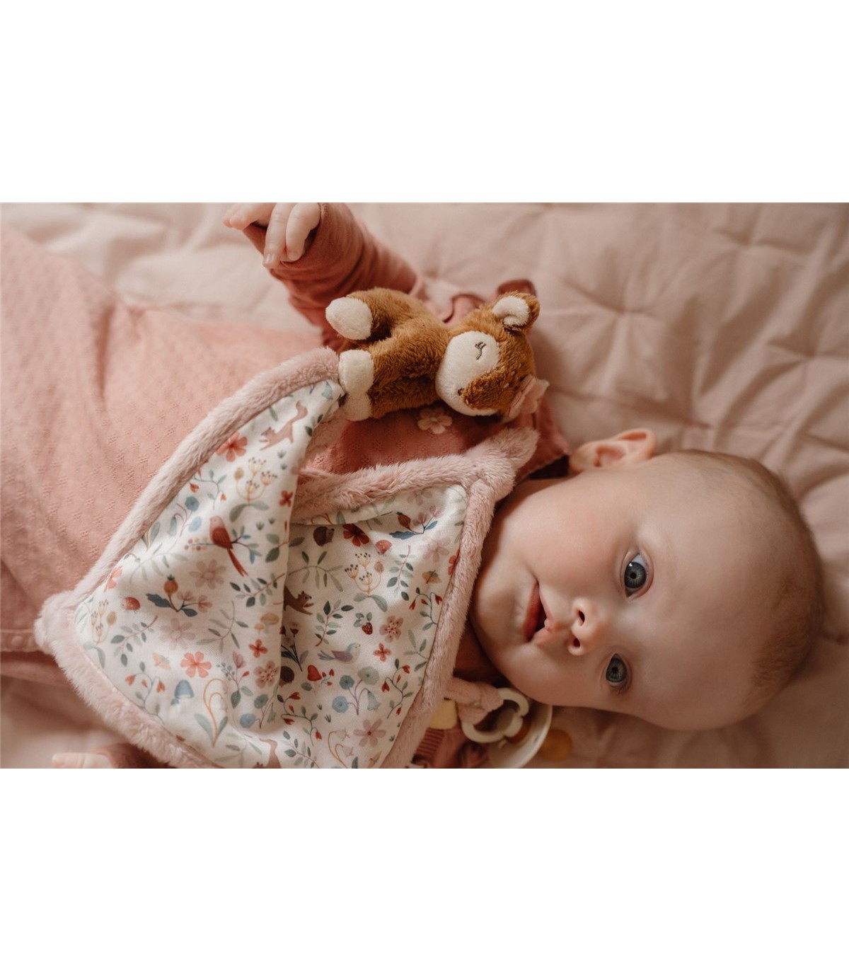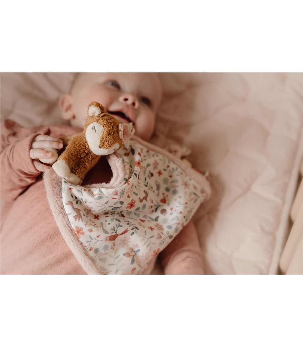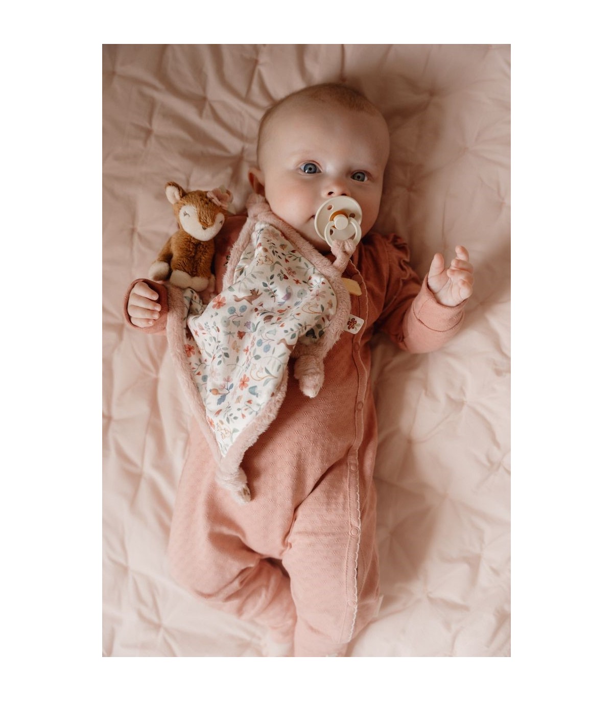 Suave y dulce. Ninguna guardería está completa sin un reconfortante doudou por eso lo convierte en un regalo ideal.. Con nuestra último estampado de FAIRY GARDEN, este suave doudou tiene unas características perfectas para un recién nacido. Calma y ayuda a conciliar el sueño. Además, puedes conectar un chupete o anillo de dentición al lazo de la tela.