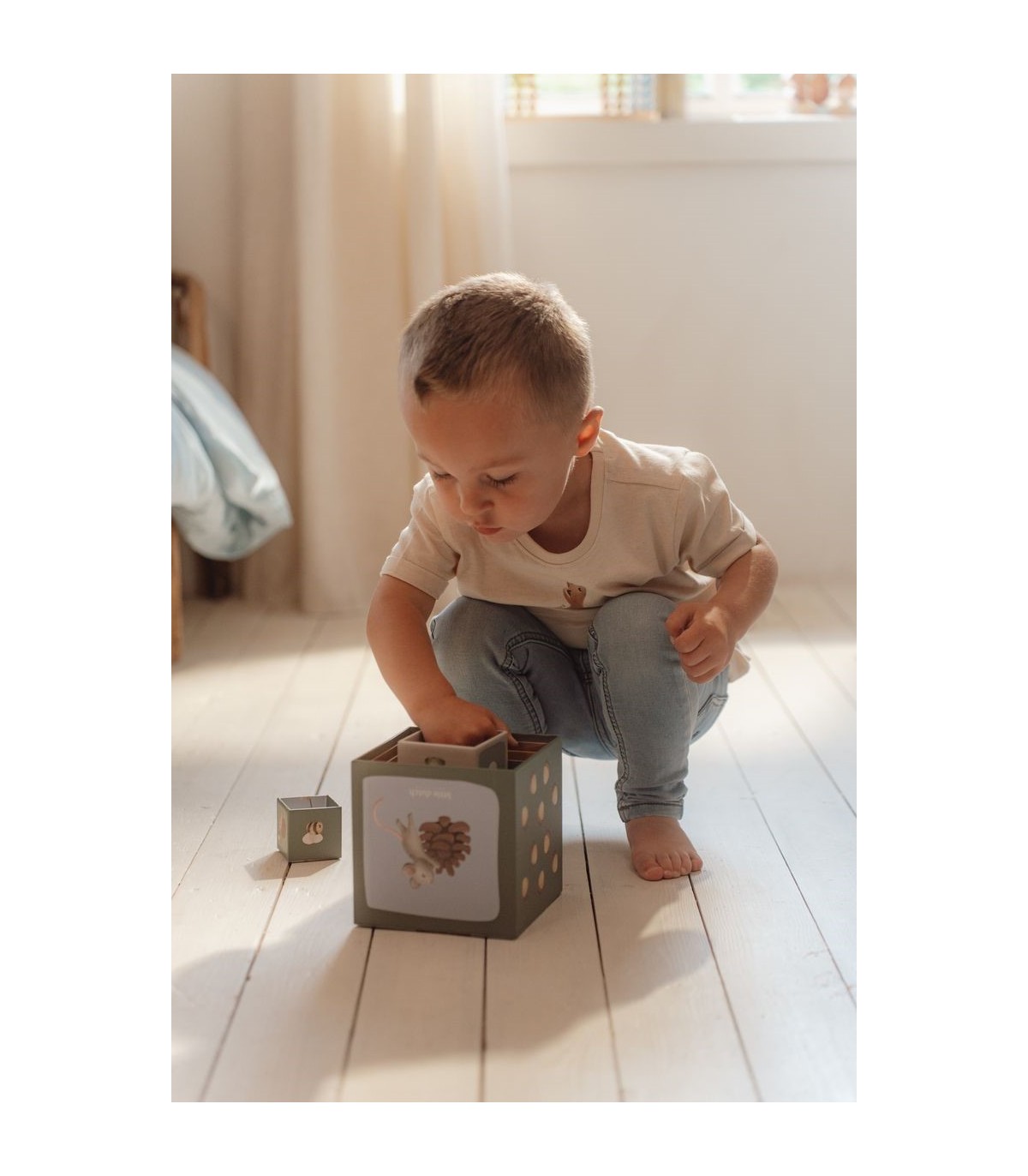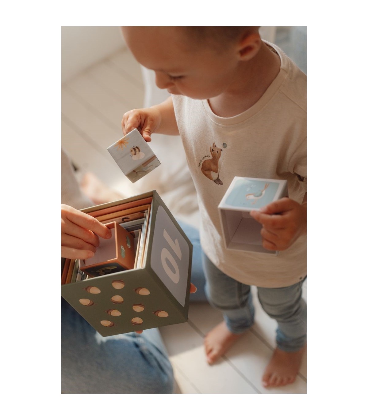 Con estos bloques de construcción, los niños aprenderán a contar hasta 10 de forma lúdica. Cada bloque presenta encantadoras ilustraciones de la colección Forest Friends, que incluyen ardillas, zorros, conejos, erizos, búhos y hongos. Los bloques más pequeños se pueden colocar dentro de los más grandes, por lo que son fáciles de ordenar. Los bloques están hechos de cartón resistente, por lo que son muy duraderos. El bloque más pequeño mide 5 cm y el más grande, 14 cm.