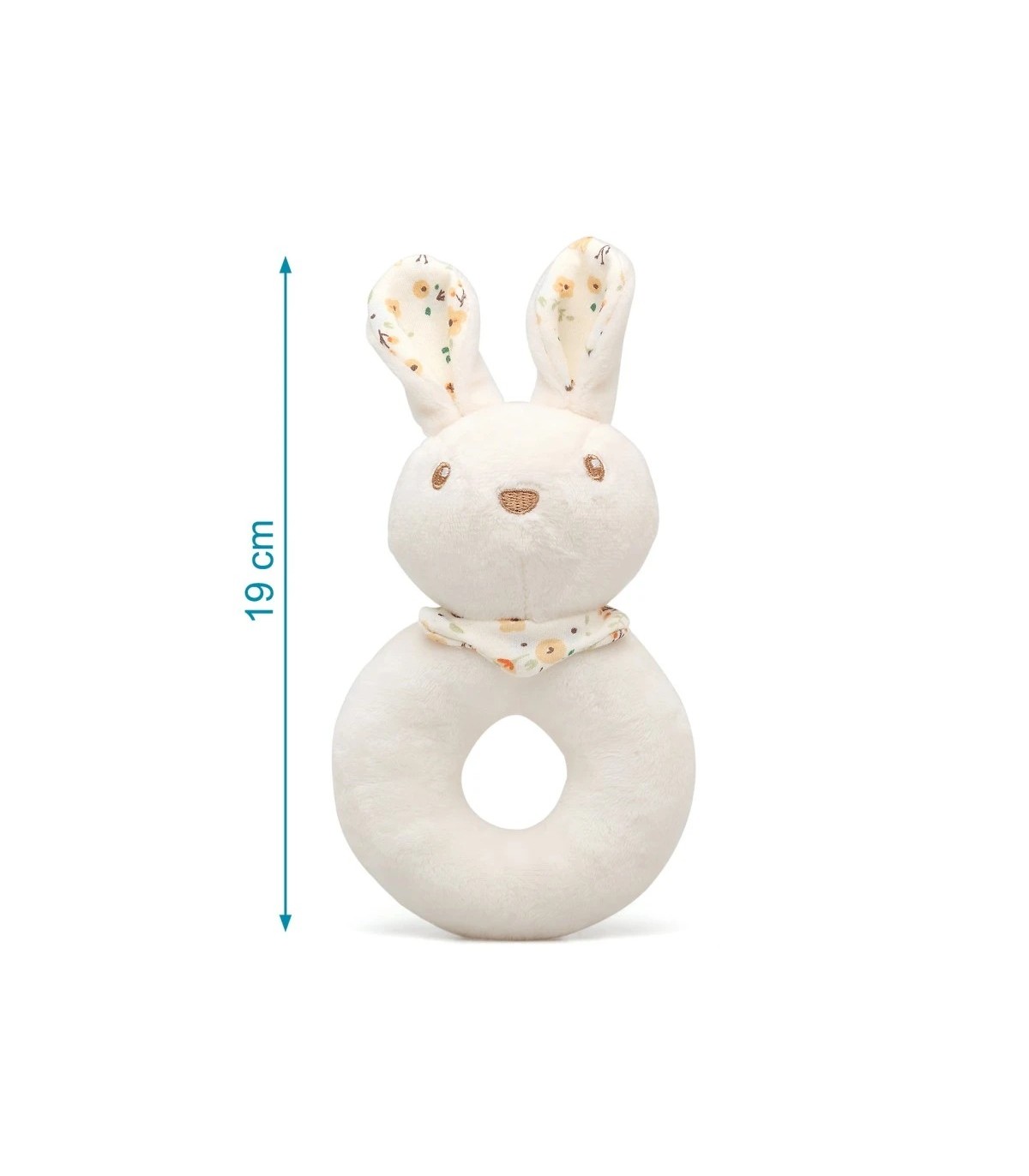 Los sonajeros sirven para estimular el desarrollo sensorial de los bebés. El sonido que emiten al ser agitados los ayuda a desarrollar su capacidad auditiva. Además, los sonajeros también pueden ayudar a desarrollar la coordinación ojo-mano del bebé, al animarlo a agarrar y sacudir el juguete. Es un juguete perfecto para sus primeras interacciones con las manos a la hora de coger objetos y moverlos. Además de ser tan adorable, es suave y súper blandito. Su forma está pensada especialmente para los más pequeños y que puedan manejarlo con facilidad y una sola mano.