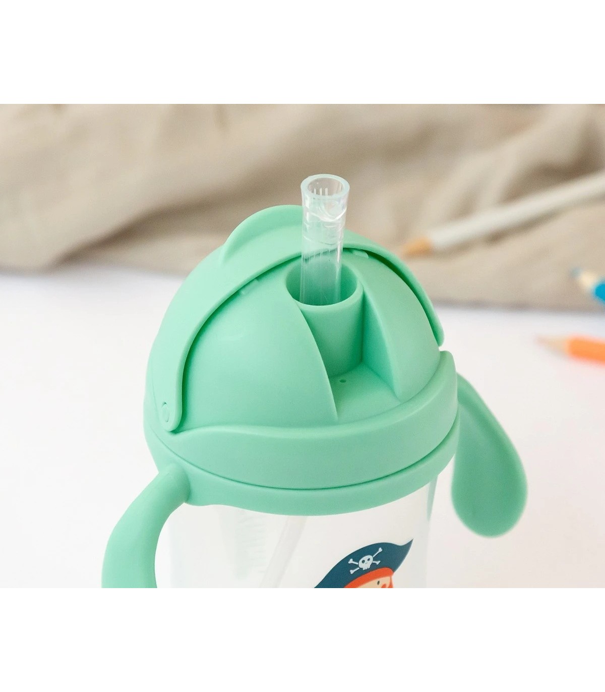 Tiene una fácil apertura deslizante, que es muy higiénica ya que una vez que se cierra la tapa, la pajita queda protegida de todo contacto con el exterior. Sus asas son desmontables por lo que facilita su sujeción. Cuenta con sistema anticólico gracias a su peonza contrapesada, el líquido fluye sin importar la inclinación de la taza y así tu peque puede beber en cualquier posición sin tragar aire. La pajita stá fabricada en suave silicona de alta calidad para uso alimentario, ofreciendo las ventajas de este material: no absorben olores, ni sabores y su forma y textura se mantienen inalteradas con el uso y el contacto con otras sustancias.