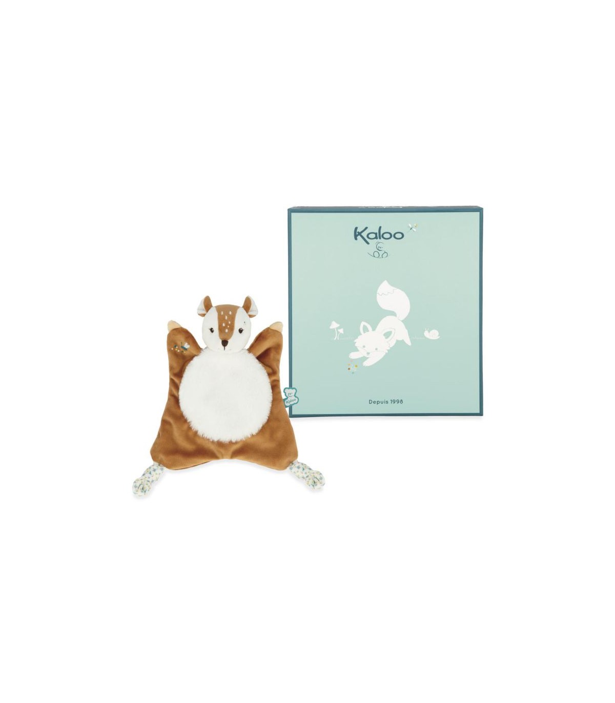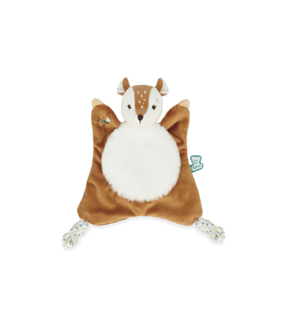 ¡El cervatillo Nathan está hecho un diablillo! Este dudú no dejará de maravillar al bebé ni un solo instante: con sus luminosos colores y su pelo de exquisita suavidad, Nathan es mucho más que un simple doudou Kaloo. Es el compañero ideal para reconfortar y mimar al niño desde el nacimiento. Los delicados detalles de este dudú le dan un toque mágico: Nathan está adornado con un encantador estampado de flores salpicado de botones de mimosa y confetis en las extremidades para crear una experiencia sensorial fascinante para el bebé. ¡Los abrazos serán aún mejores con su mullida tripita! Los lazos largos son perfectos para sujetar el chupete y además le ofrecen unos puntos de agarre estimulantes para sus manitas.