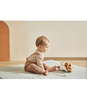 Gracias a su cola, brazos y patas, los más pequeños pueden cogerlo y manipularlo fácilmente. En cuanto a su barriga extrasuave, ¡es un placer pasar las yemas de los dedos por ella o recostar la cabeza sobre ella para echar una buena siesta! Naturalmente lindo y curioso, el títere Nathan de Kaloo está impaciente por seguir al bebé a todas partes. Está confeccionado en microterciopelo, pelo sintético (poliéster) y guata de poliéster reciclado. Este adorable compañero de juegos mide 25 cm y se puede lavar a máquina a 30°. Entregado en una bonita caja de regalo, el peluche Nathan Fawn está listo para regalarlo con todo su cariño. ¡Personalice su regalo de nacimiento agregando un mensaje en el espacio provisto debajo de la tapa y cree un recuerdo para toda la vida!