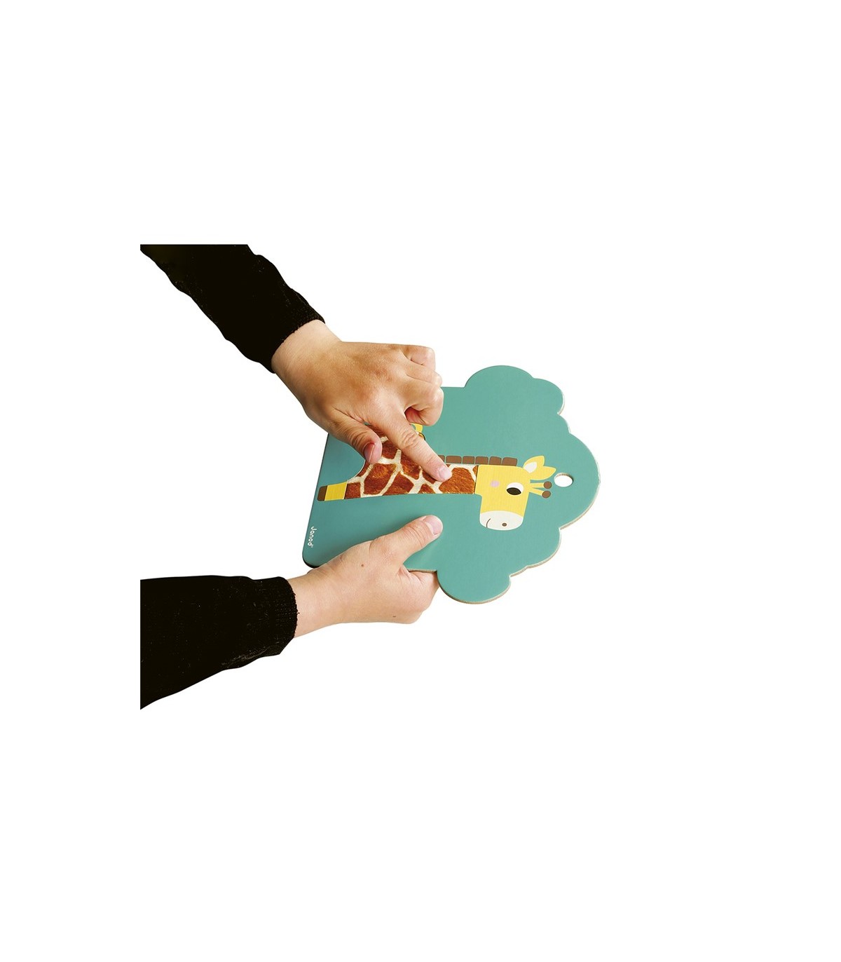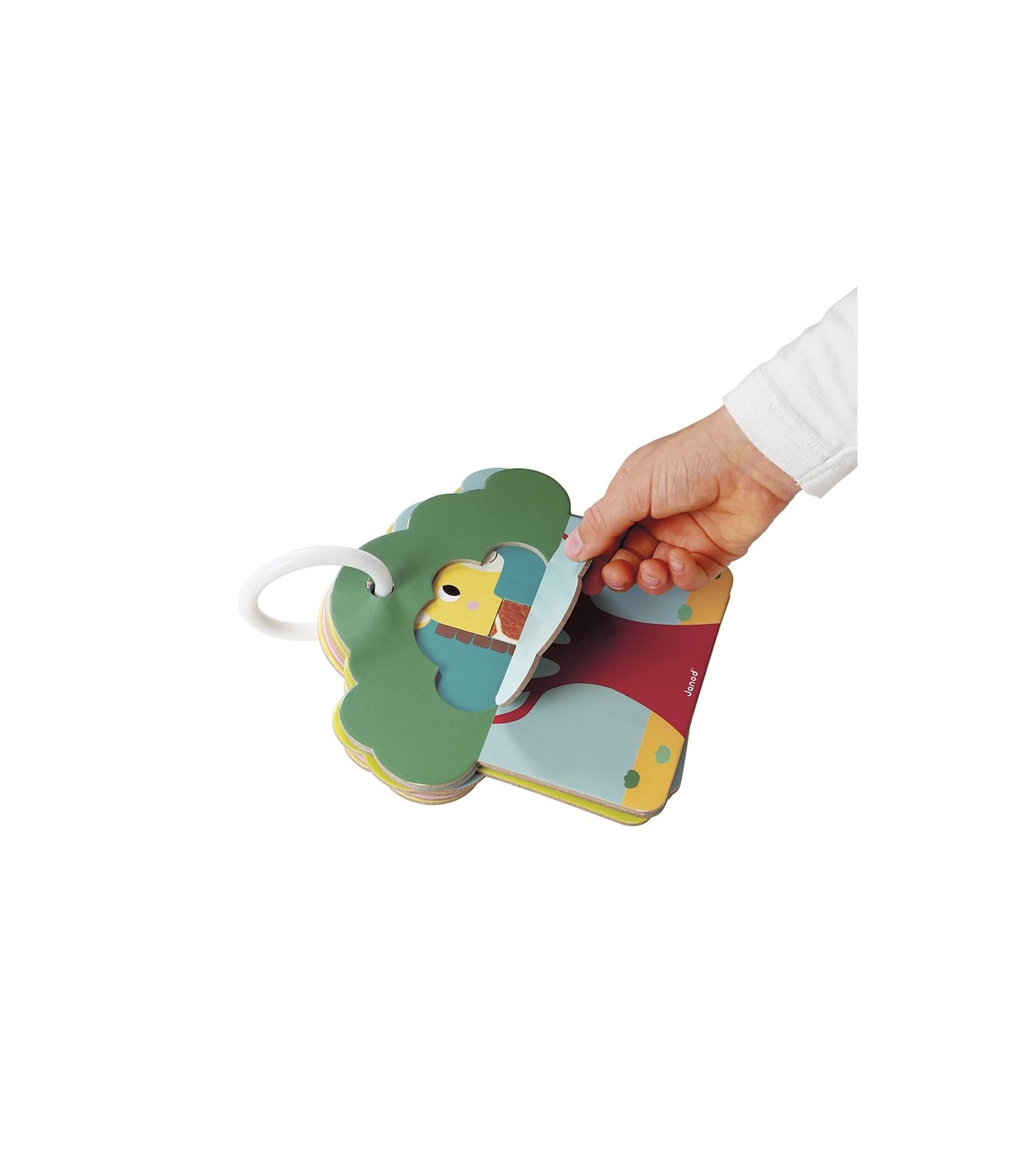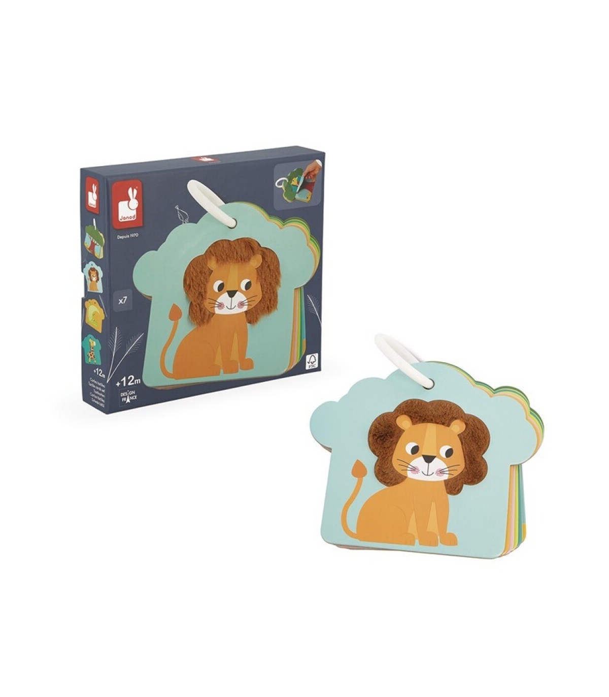 ¡A conocer a los animales de la sabana! Al retirar el follaje del baobab, el niño descubrirá una de las 6 cartas texturizadas sobre los animales de la sabana. ¿Cuál es el más suave? ¿El cocodrilo o la jirafa? Este juguete de estímulo es ideal para desarrollar el sentido del tacto. También es muy práctico para llevárselo a todas partes gracias a su anilla de plástico. Juguete de cartón FSCTM. Juguete de estímulo para niños a partir de 12 meses.