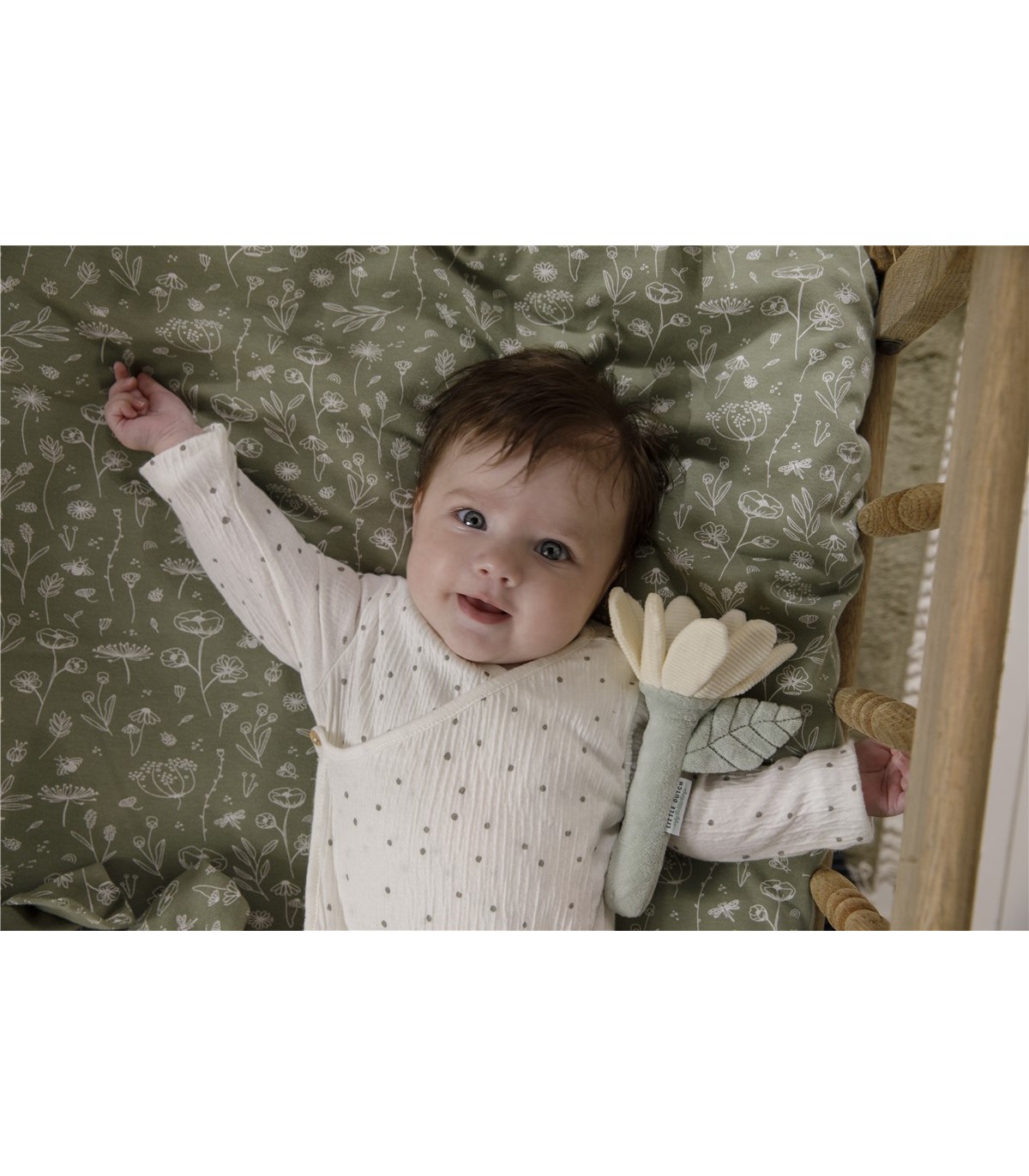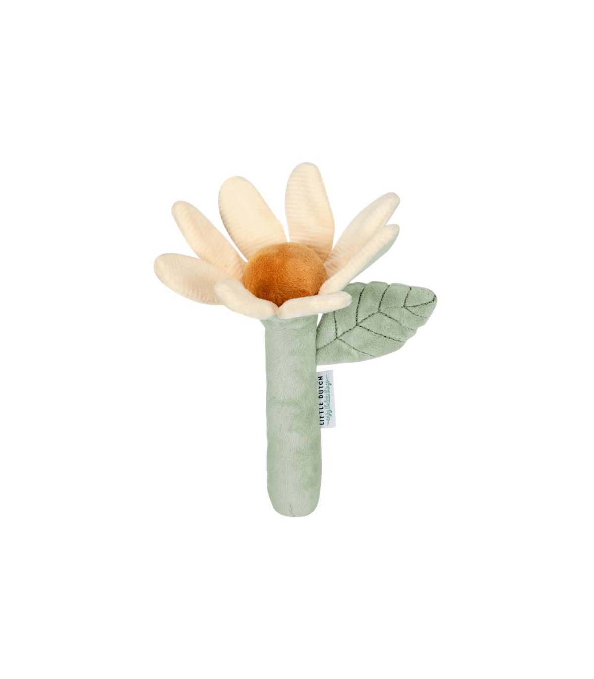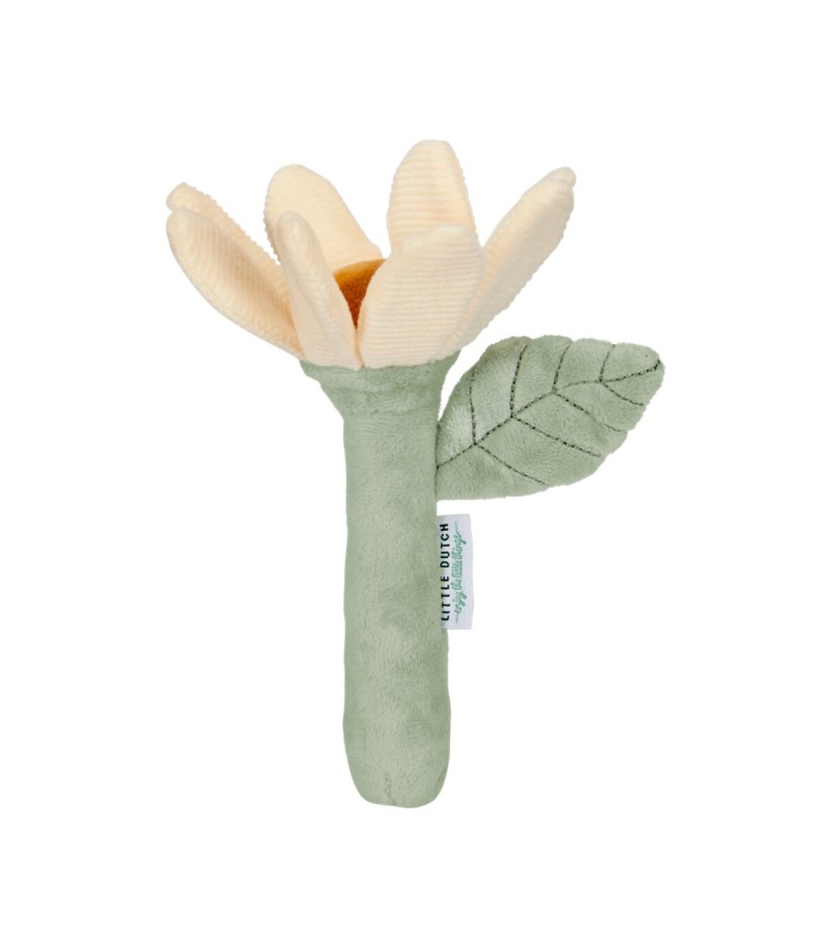 A esta preciosa flor le gustaría ser tu amiga. Hace un sonido agradable cada vez que juegas con ella. El sonajero estimula la coordinación mano-ojo, está hecho de materiales maravillosamente suaves y puede ser fácilmente agarrado.