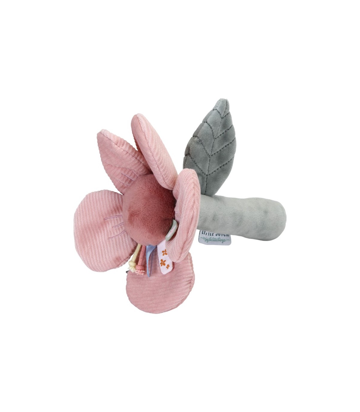 El tiempo de juego está floreciendo. Este juguete sonajero super suave en forma de flor delicada es un verdadero placer para tu pequeño. Hace un divertido sonido de hormigueo cada vez que su bebé juega con él. Este juguete cautivador está enriquecido con etiquetas bellamente ilustradas, lindas hojas de pana y unos coloridos nudos de cuerda. Además, estimula la coordinación mano-ojo.