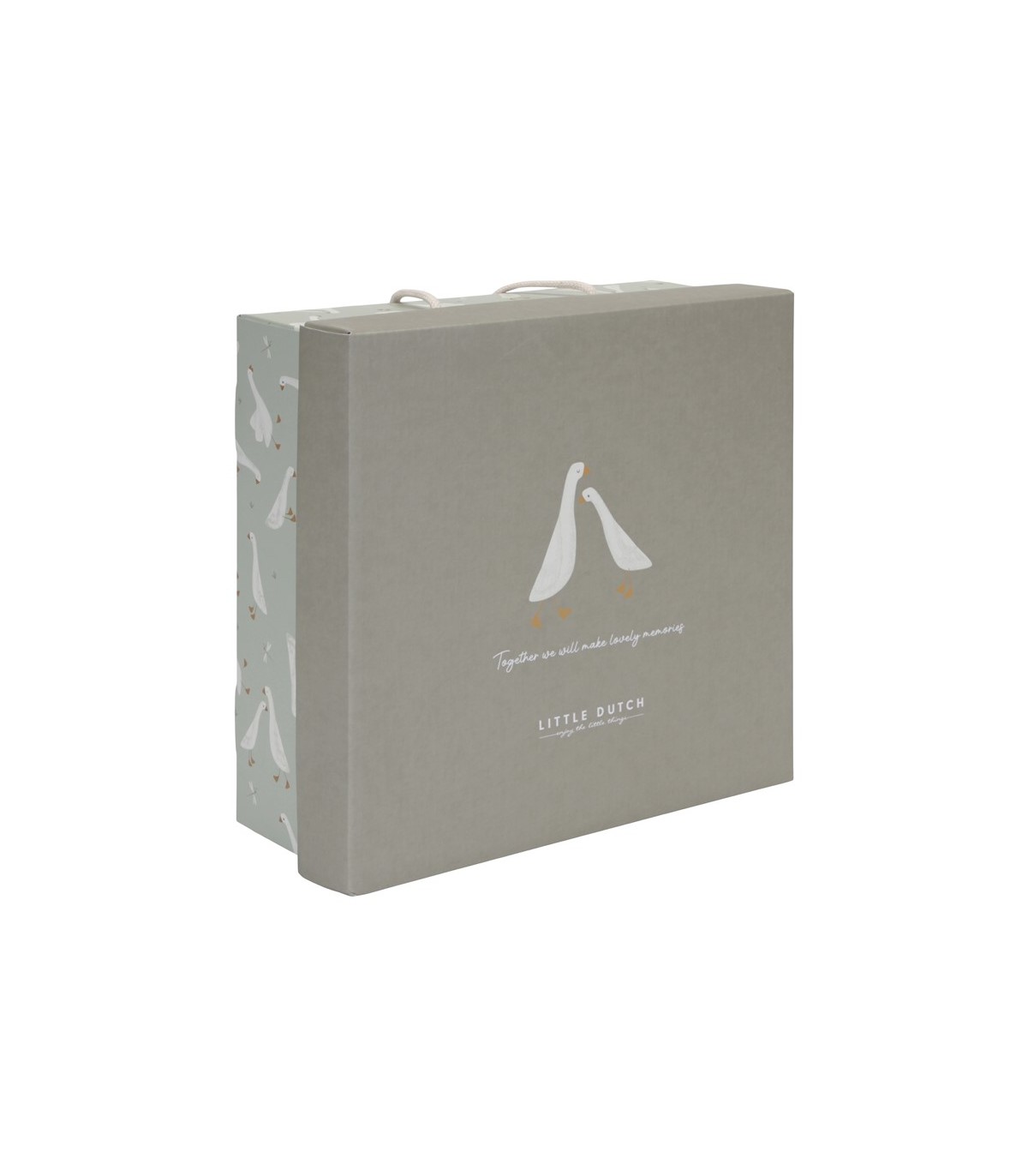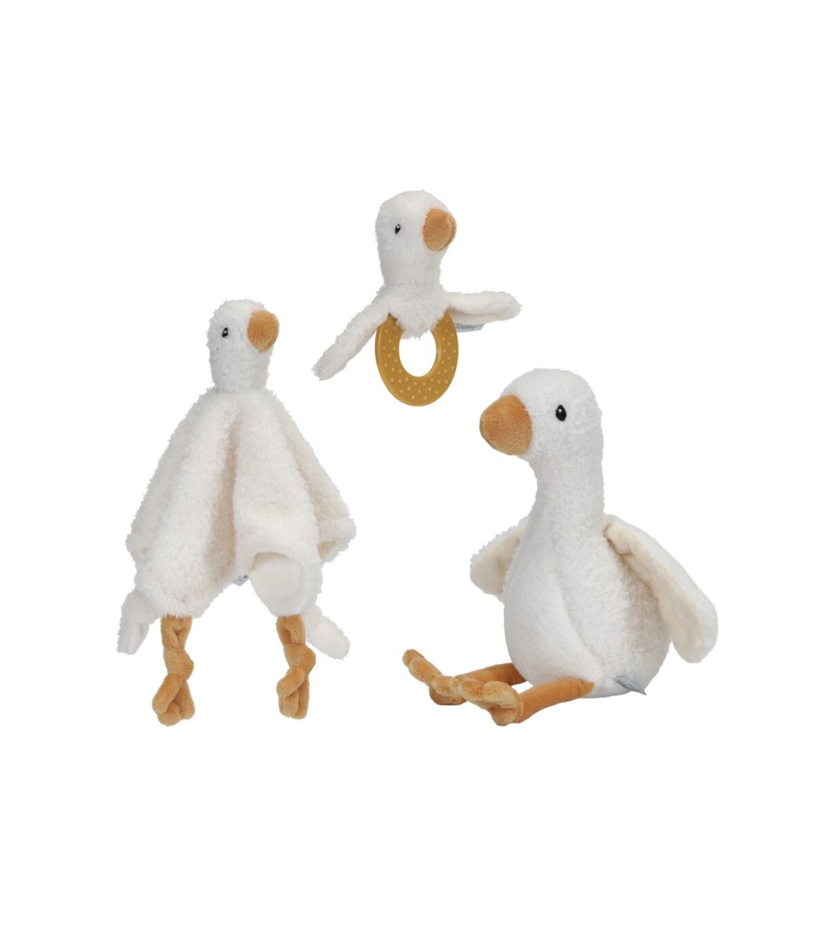 Caja regalo Ocas, para hacer el regalo perfecto a un recién nacido o baby shower. Esta bonita caja incluye tres artículos suaves para acurrucarse, abrazar y jugar. El doudou en forma de Oca es maravilloso para acurrucarse con ella, pero también es divertido de usar para jugar a esconderse detrás. El peluche de Oca siempre espera un abrazo y nunca dejará de vigilar al bebé. Este conjunto incluye un anillo de dentición con una suave Oca que promueve la coordinación mano-ojo y estimula la curiosidad del bebé. El anillo también proporcionará consuelo relajante cuando los primeros dientes de un bebé comienzan a aparecer. Los tres artículos vienen en una hermosa caja de regalo.