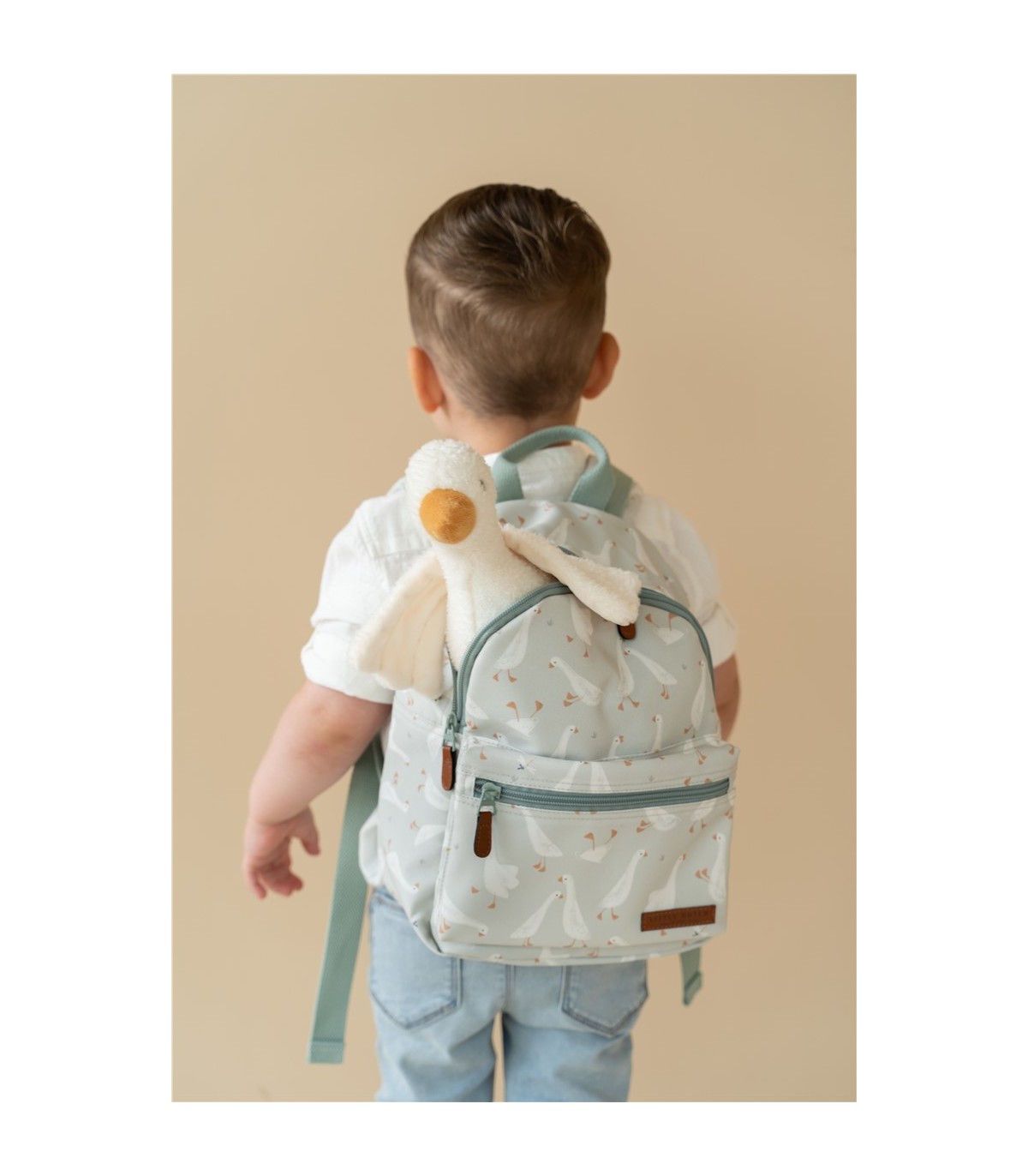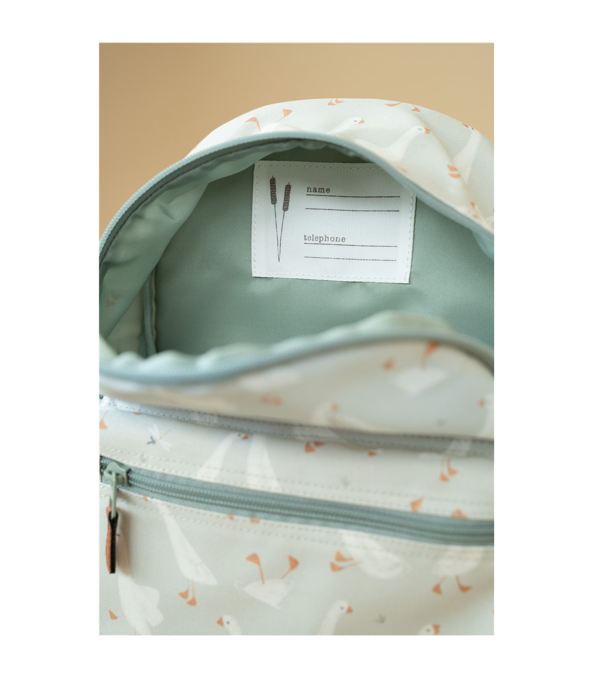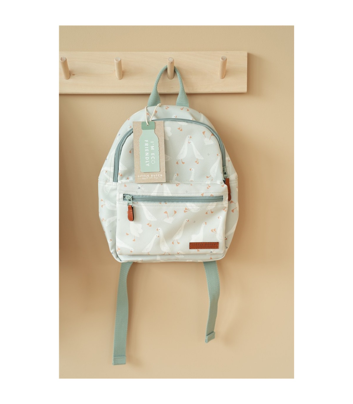 Esta linda mochila es ideal para aventuras escolares o una visita familiar. Es ecológica y está compuesto por 10 botellas de plástico recicladas. La mochila es ajustable y tiene una etiqueta para poner nombre en el interior. Gracias a su portabotellas, los niños no derramarán su bebida.