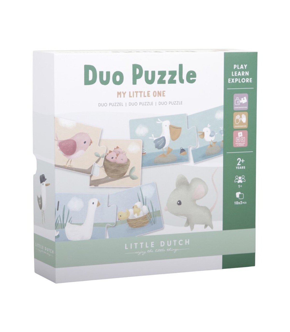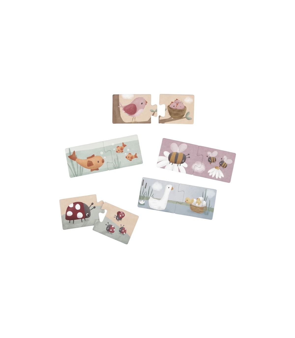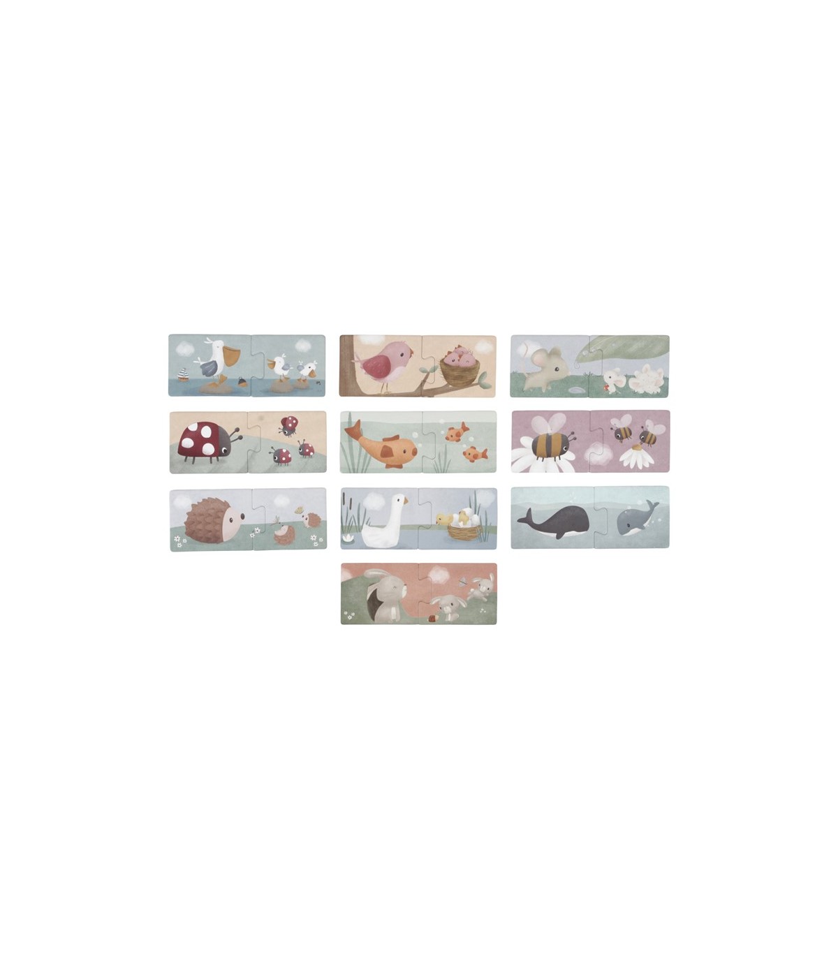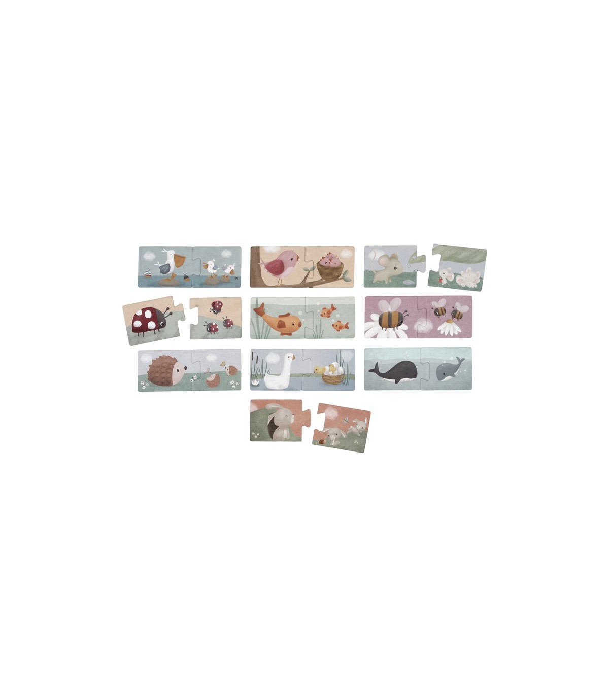 Ayuda a las crías de animales e insectos a encontrar su padre! ¿Dónde están los conejitos bebé de mamá conejito? ¿Puedes emparejar al bebé ballena con su papa? Has visto el nido de pollitos de ganso? Este bonito Duo Puzzle presenta preciosas ilustraciones de animales y sus pequeños sobre piezas de un rompecabezas de cartón. Un tamaño perfecto para tu pequeño! Hay 10 coincidencias hechas para ayudar al desarrollo de su hijo en la concentración y coordinación. ¡Diviértete haciendo los rompecabezas juntos!