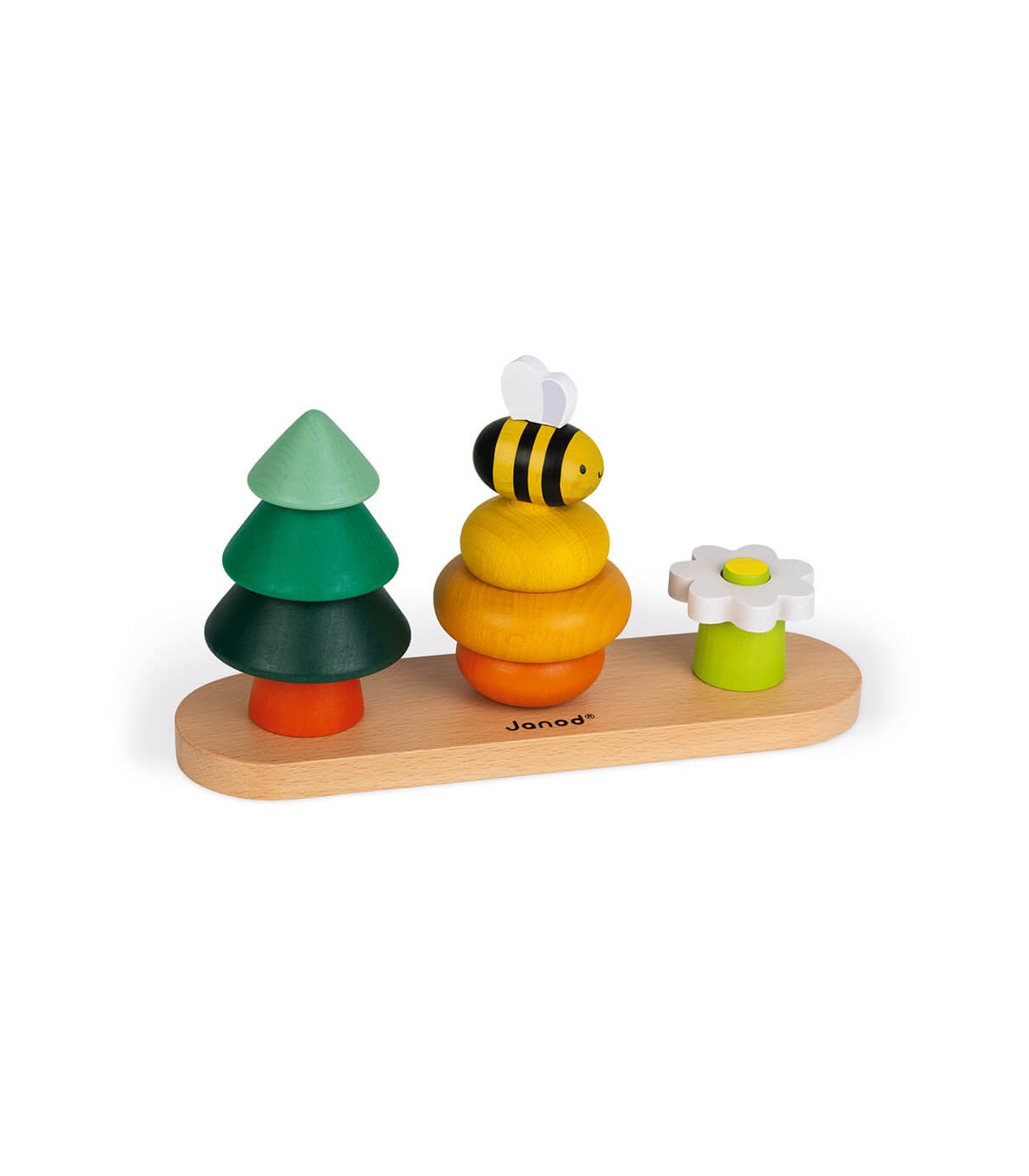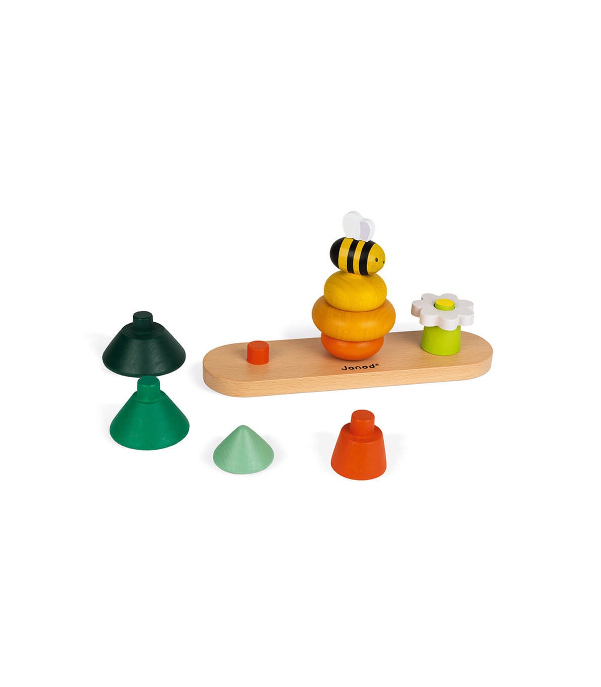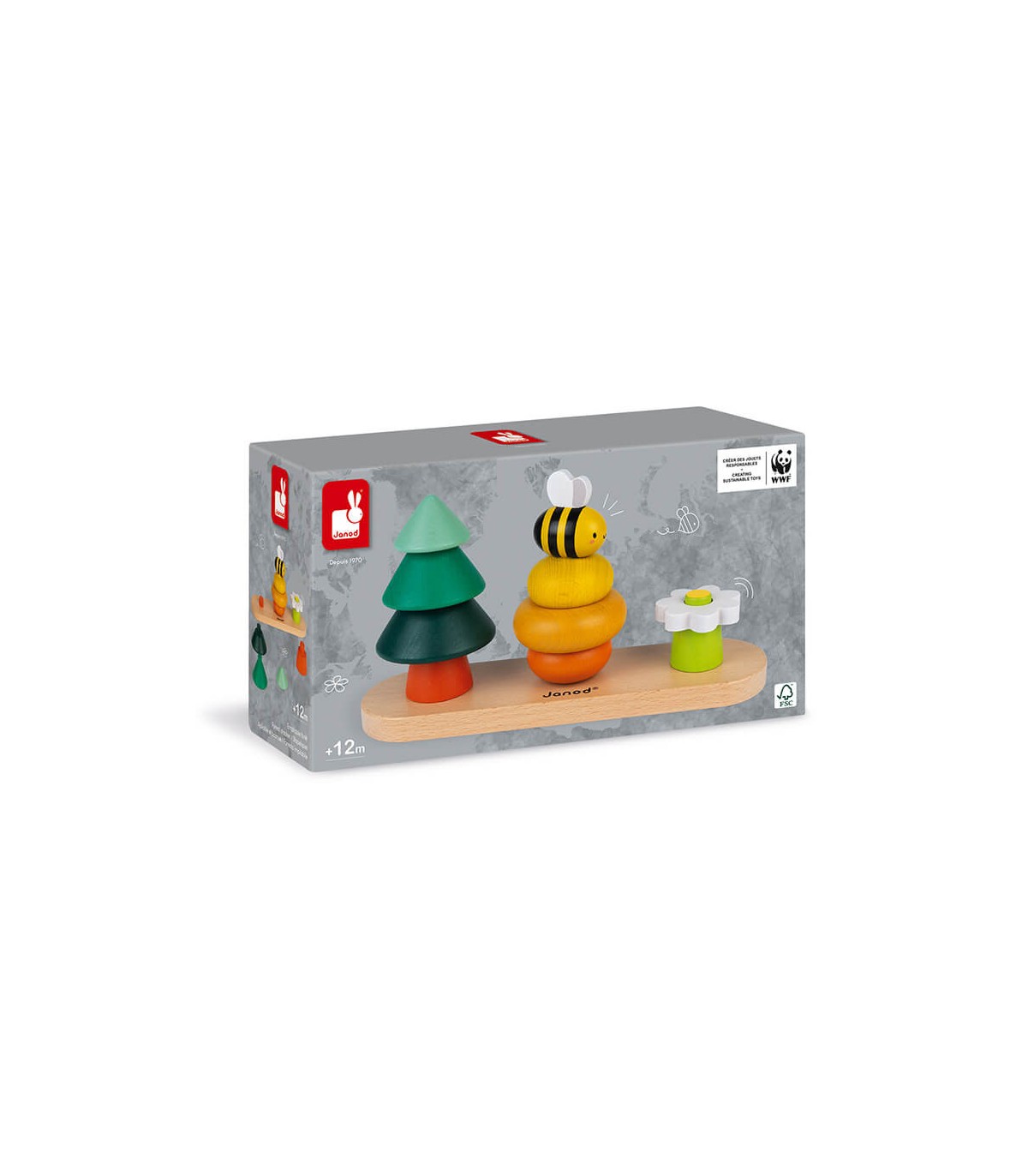 Este juguete tan colorido gracias a la pintura al agua permitirá al niño desarrollar su coordinación visual y su destreza. Juguete de madera maciza con certificado FSC® (madera procedente de bosques gestionados de forma sostenible). ¿Lo sabías? ¡Las abejas tienen que libar entre 2 y 3 millones de flores para producir 1 kg de miel! Juguete desarrollado en colaboración con WWF®.