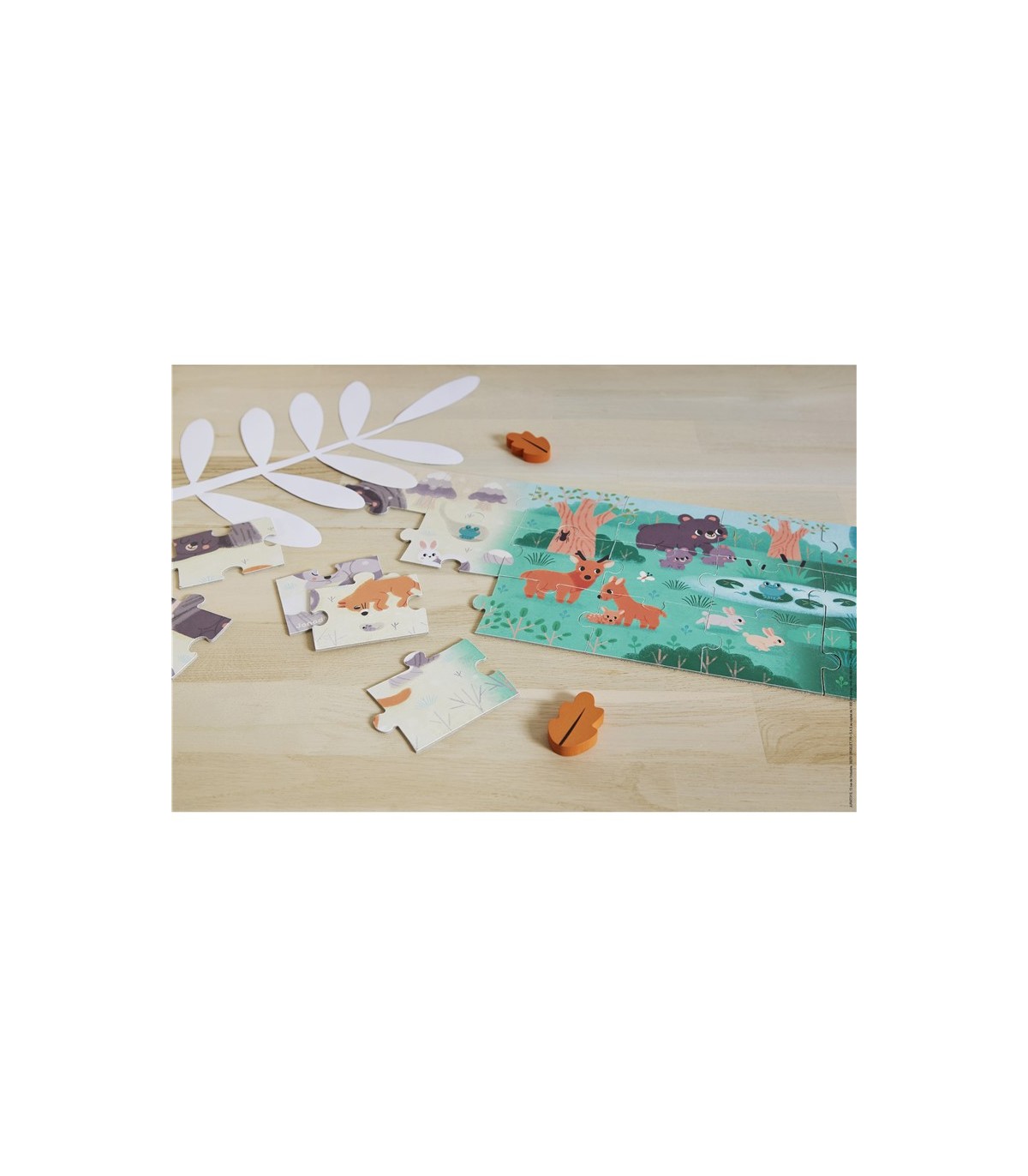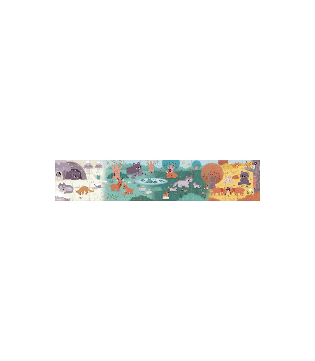 ¡Hora de conocer la vida de nuestros animales salvajes favoritos en las distintas estaciones del año! ¡Los niños descubrirán paso a paso un mundo lleno de ternura gracias a este bonito puzle panorámico de 36 piezas! Una vez terminado, este juego de concentración de cartón con certificado FSC® mix (madera de bosques gestionados de manera sostenible) y fabricado en Francia con tintas vegetales, mide 1 metro de largo y permite sumergirse en la vida en el bosque en invierno, primavera, verano y, por último, otoño.
