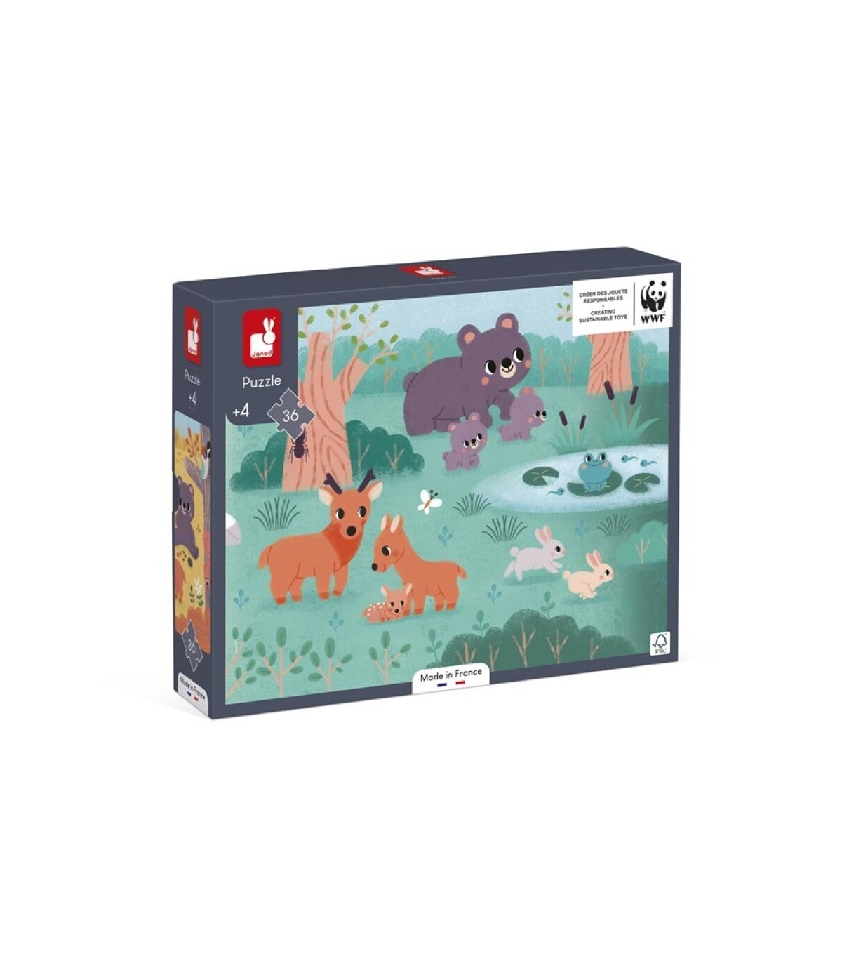 Diseñado en colaboración con WWF®. Janod apoya los esfuerzos de WWF® para preservar el medio ambiente y la biodiversidad con una nueva gama de juguetes fabricados con materiales más sostenibles. A través de esta colección, queremos inspirar y concienciar a las generaciones más jóvenes a favor de la fauna y la naturaleza.