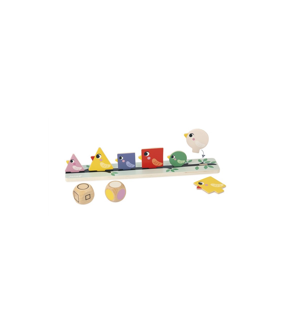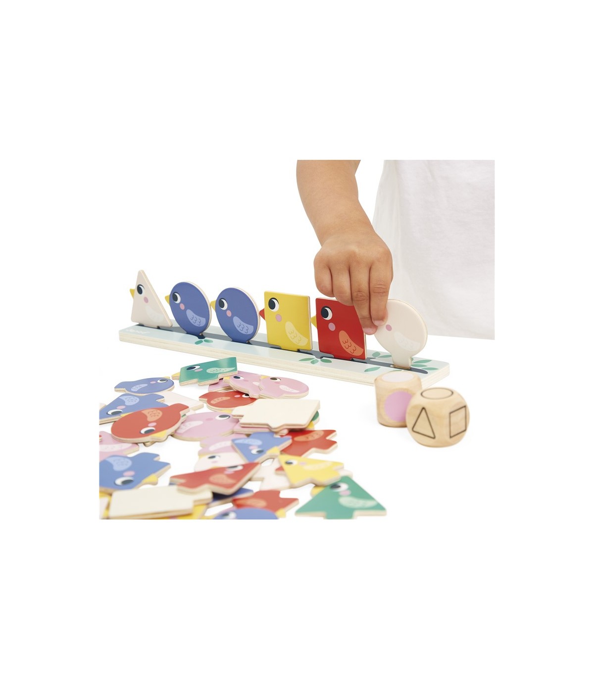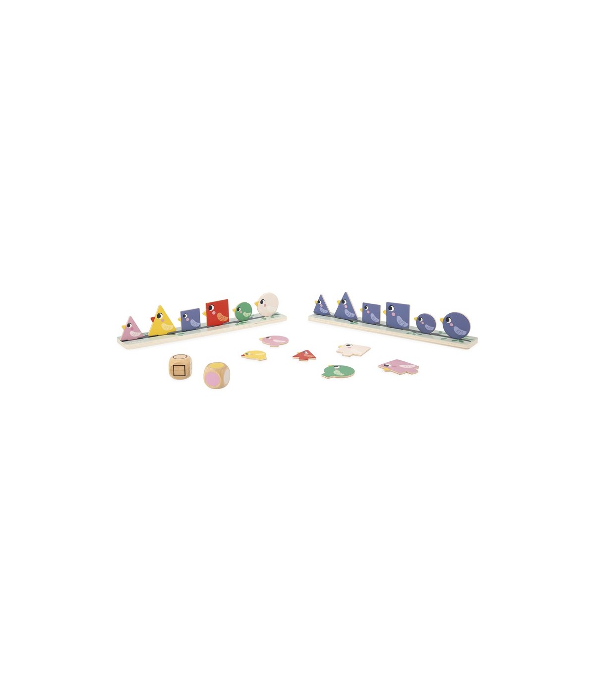 Con los dados, los niños sabrán qué color, forma y tamaño deben buscar. De forma totalmente autónoma podrán cruzar esos datos y posar en la rama los pájaros en cuestión. ¡Es muy práctico porque, gracias a las dos ramas, pueden jugar dos niños a la vez e incluso retarse! Este juego es ideal para desarrollar la coordinación mano-ojo. Está hecho de madera FSC®. Forma parte de una gama pedagógica diseñada en colaboración con una maestra para ajustarse al máximo a los aprendizajes y programas de cada nivel.
