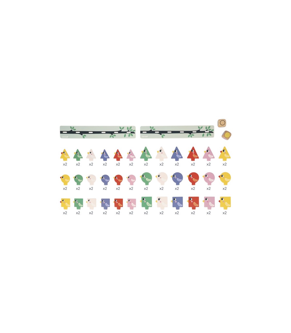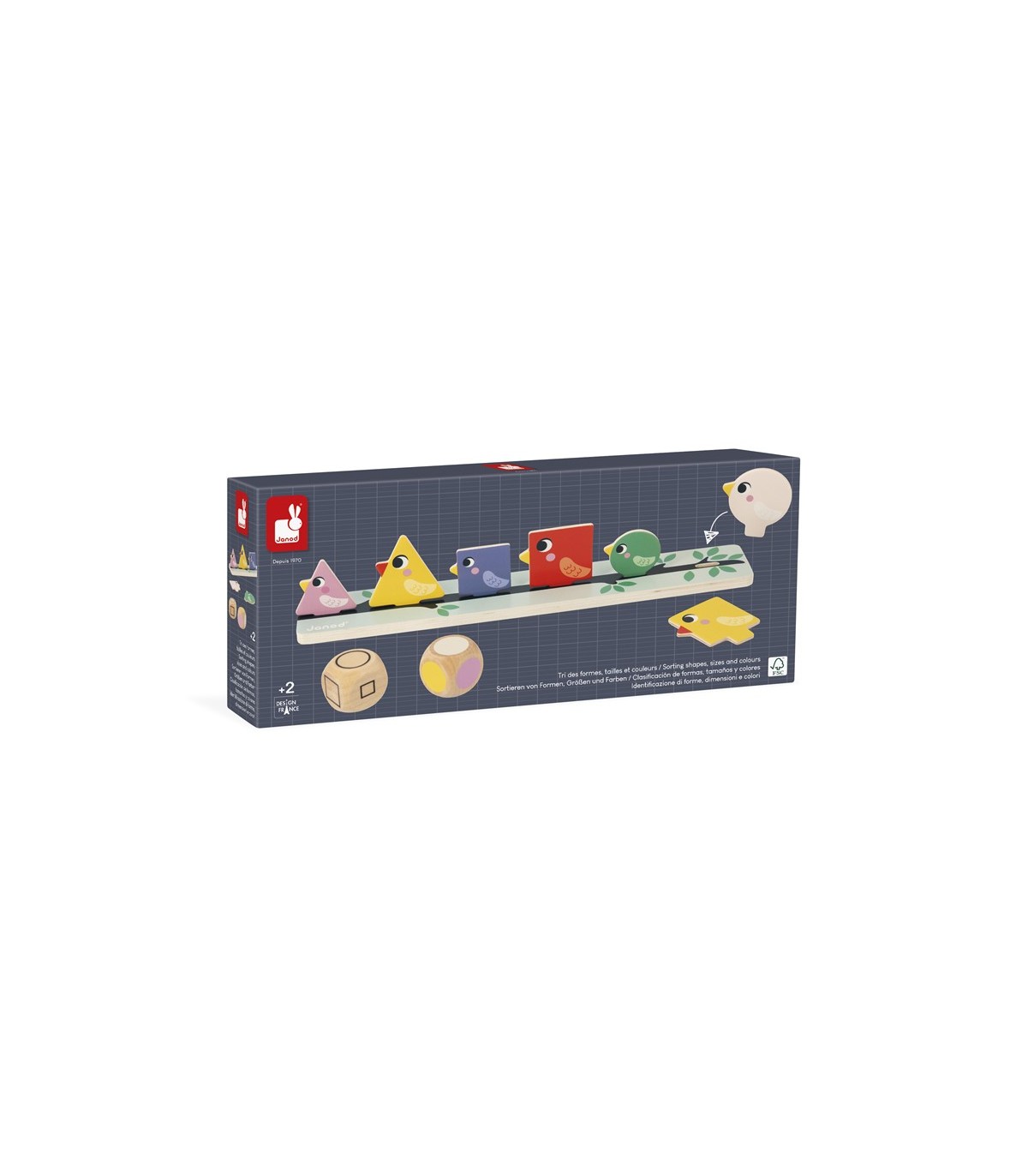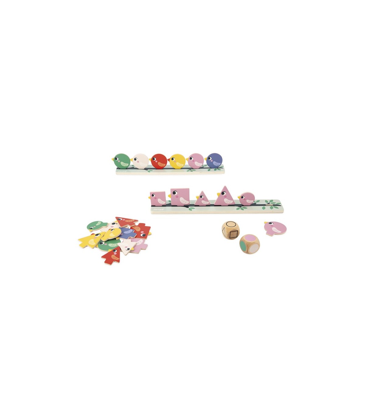Con los dados, los niños sabrán qué color, forma y tamaño deben buscar. De forma totalmente autónoma podrán cruzar esos datos y posar en la rama los pájaros en cuestión. ¡Es muy práctico porque, gracias a las dos ramas, pueden jugar dos niños a la vez e incluso retarse! Este juego es ideal para desarrollar la coordinación mano-ojo. Está hecho de madera FSC®. Forma parte de una gama pedagógica diseñada en colaboración con una maestra para ajustarse al máximo a los aprendizajes y programas de cada nivel.
