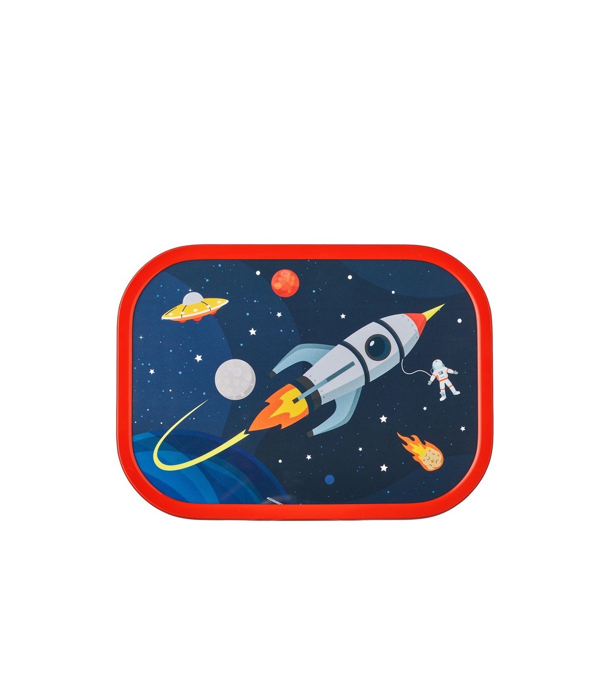 Caja de almuerzo fácil de limpiar, versátil, resistente y apta para lavavajillas. Cuenta con un sellado hermético que hace la comida del interior se mantenga fresca durante tiempo. NO APTA PARA MICROONDAS. Fácil de usar para un niño, se convierte en una caja bento con un separador extraíble de doble compartimento y un pequeño tenedor. Libre de BPA.