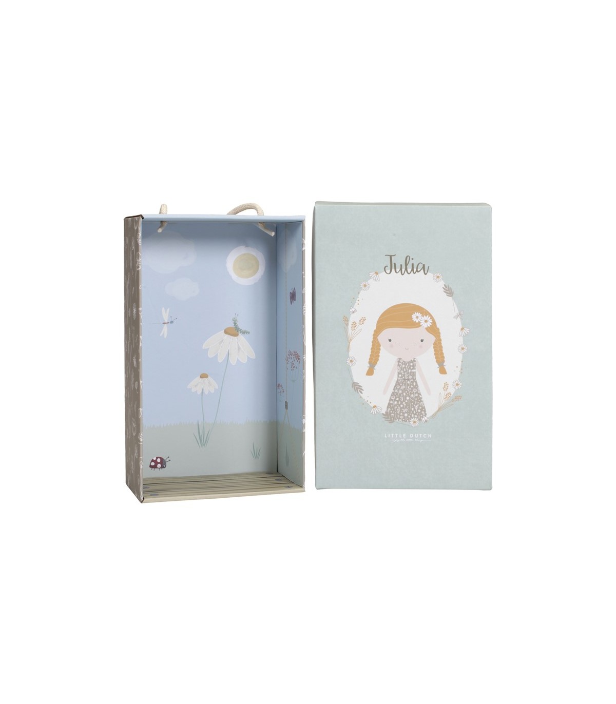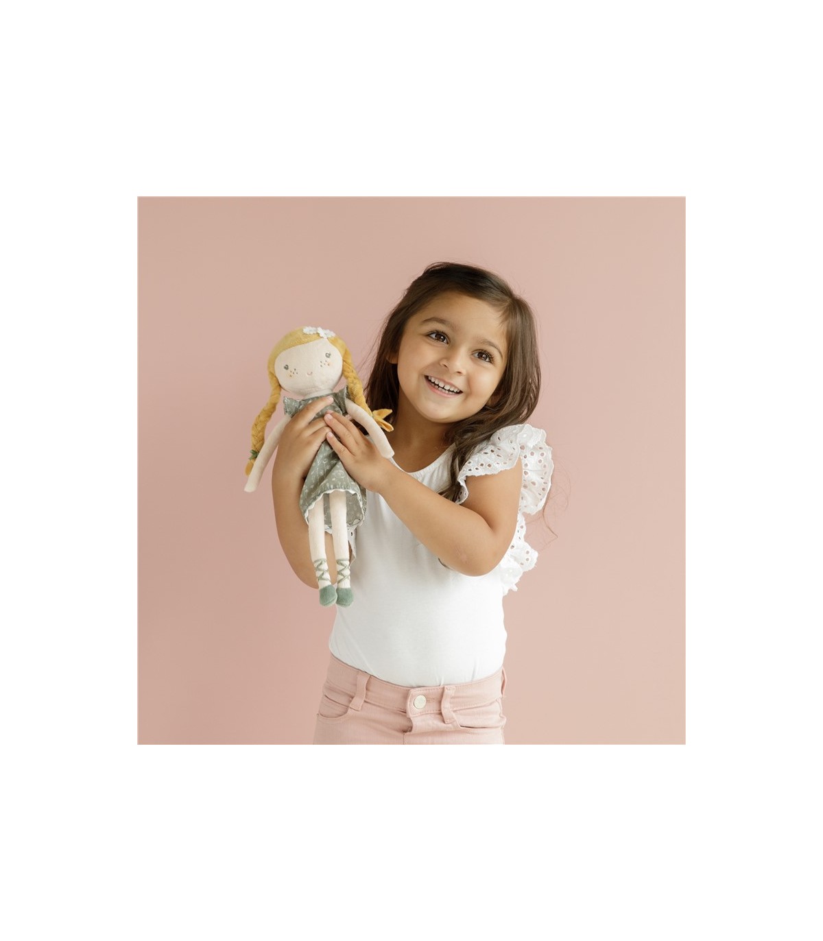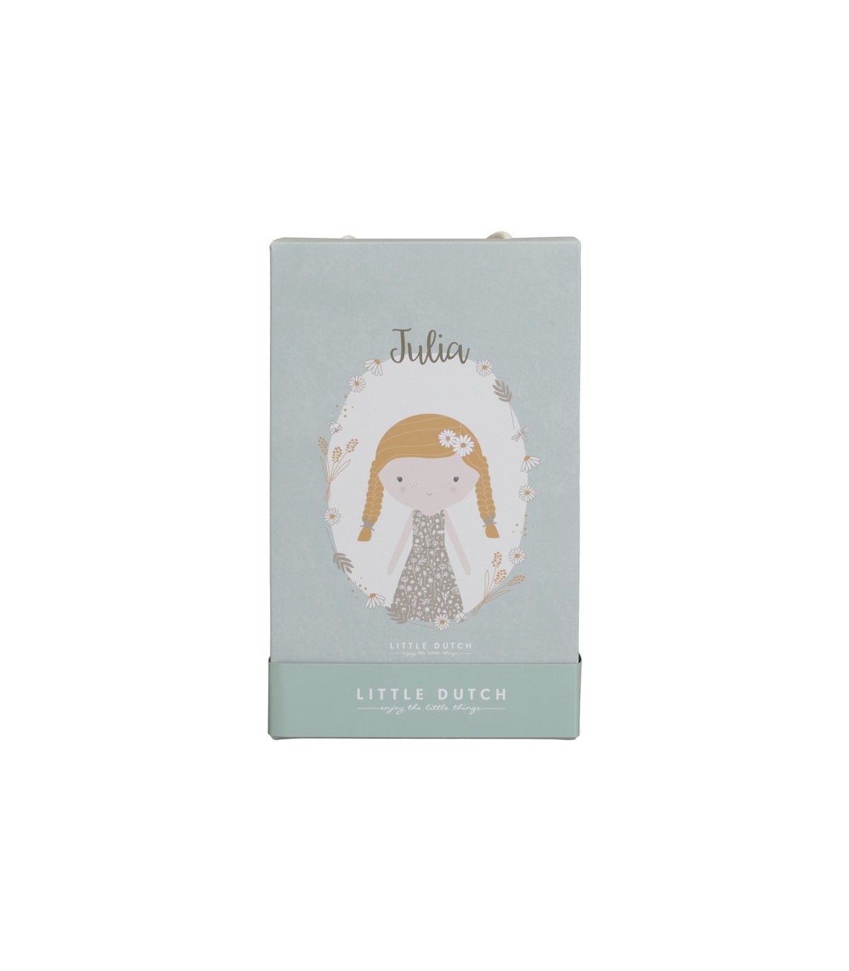 Conoce a la encantadora Julia. Esta muñeca de peluche de Little Dutch con un lindo vestido quiere ser abrazada. Julia puede sentarse y le gusta ir contigo en el cochecito de muñecas de Little Dutch. La muñeca viene en una hermosa caja para su almacenaje. La muñeca Julia mide 35 cm de altura.