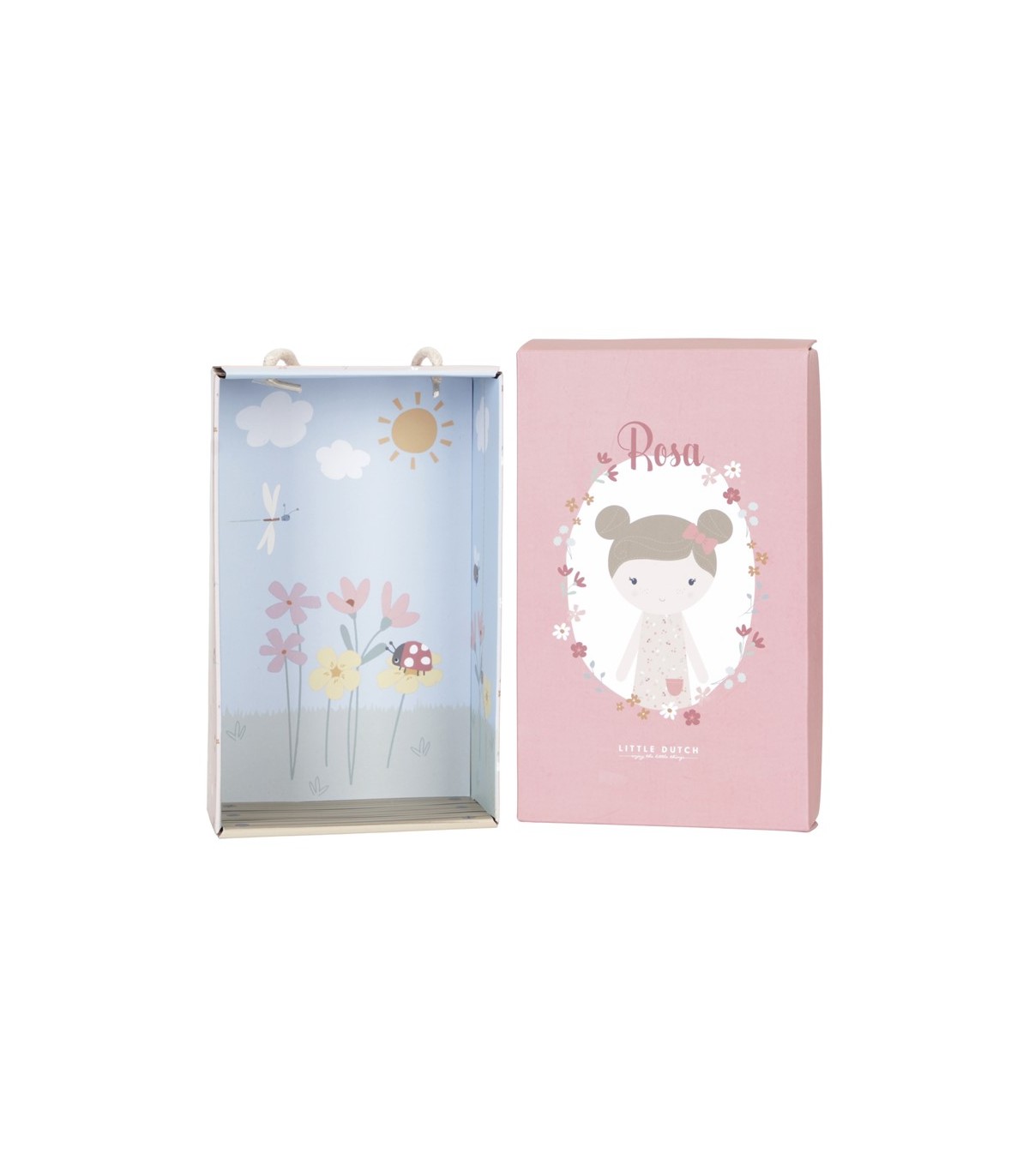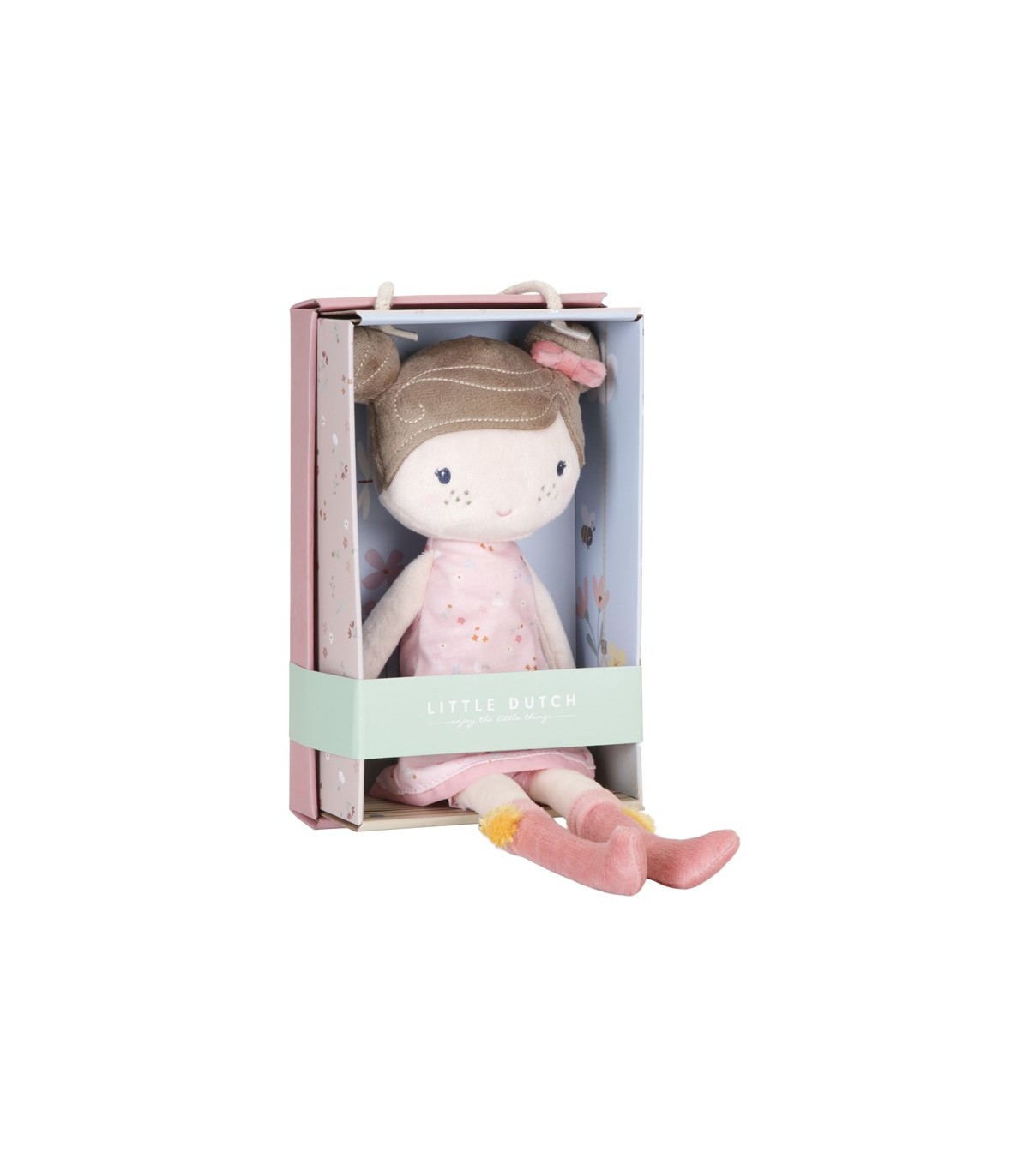 Conoce a la encantadora Rosa. Esta muñeca de peluche de Little Dutch con un lindo vestido quiere ser abrazada. Rosa puede sentarse y le gusta ir contigo en el cochecito de muñecas de madera Little Dutch.Altura: 35 cm