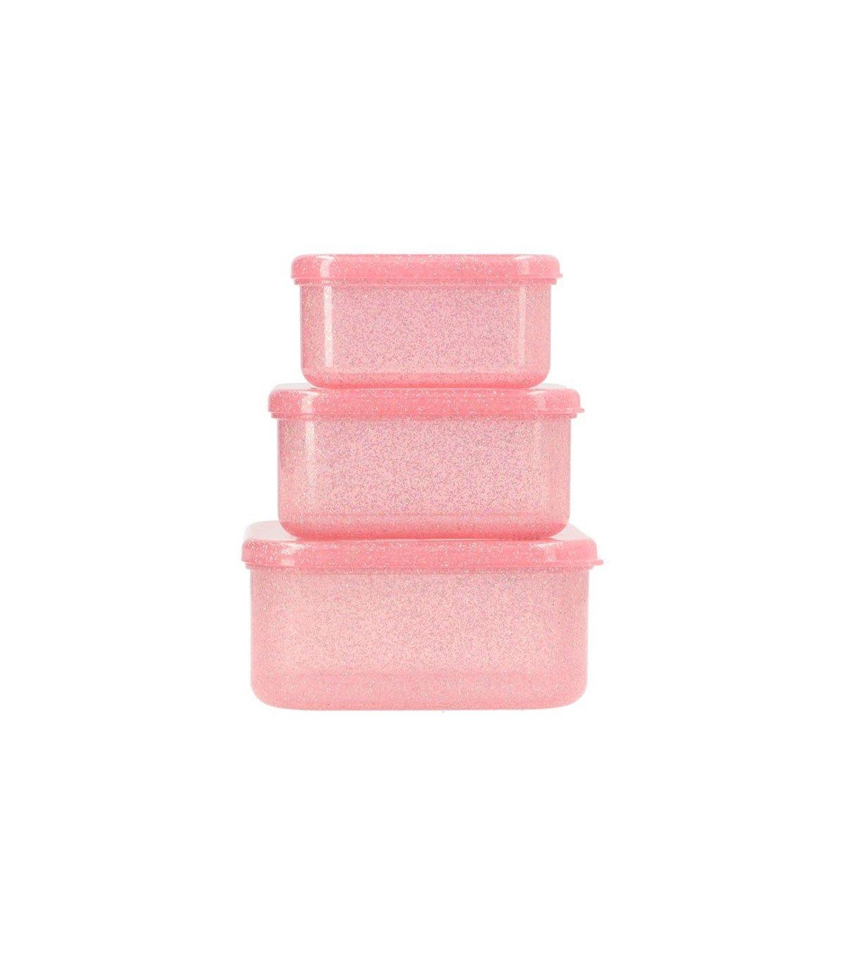 Set de 3 cajitas almuerzo glitter estupendas para llevar distintos tipos de alimentos separados al colegio, de excursión o a cualquier parte que vayas.