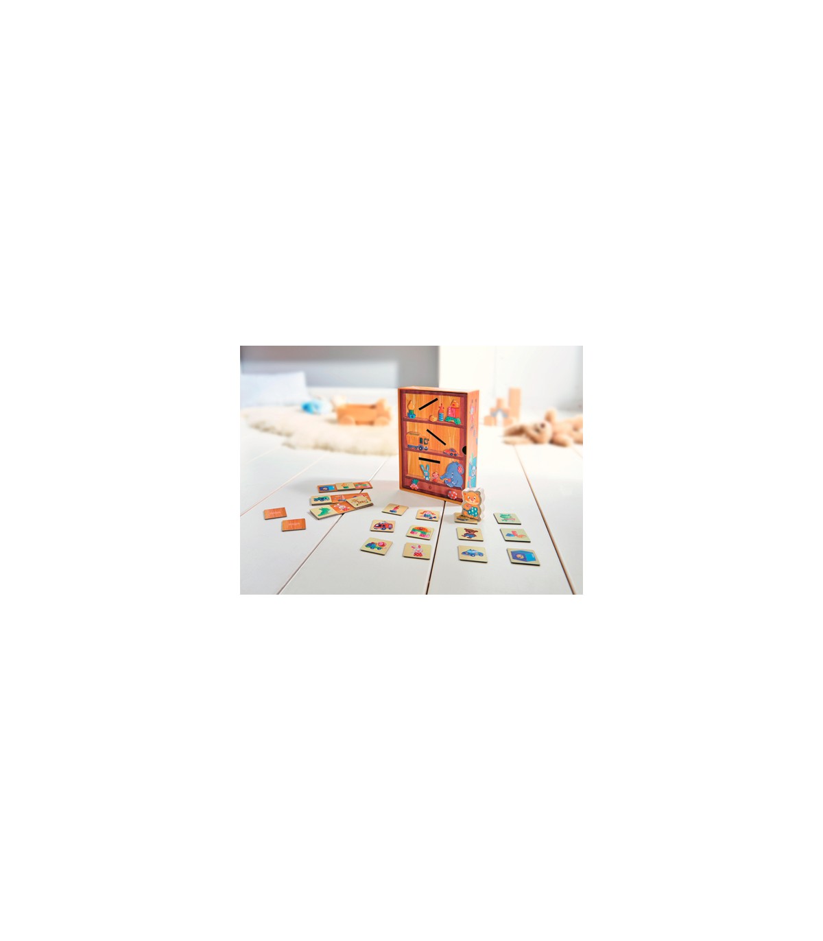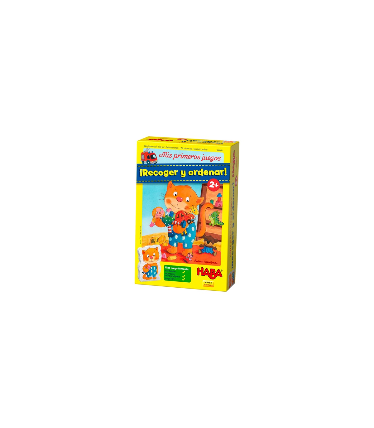 El pequeño gato Tom ha estado jugando todo el día. Ahora es el momento de recoger y de ordenar. Pero, ¿dónde van las piezas de construcción? ¿ En qué lugar colocamos a los bomberos y dónde va la jirafa de peluche? Quien clasifique correctamente las fichas de juguetes ayudará al gato Tom a recoger y ordenar la habitación.