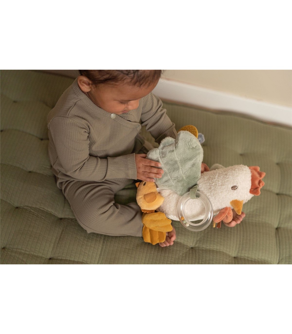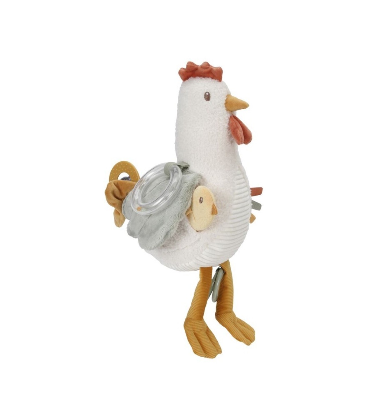 Esta gallina podrá ser tu nueva mejor amiga, hay mucho que ver y descubrir en este juguete de actividades en forma de gallina. Desde sus bonitas alas crujientes pasando por sus sonidos tintineantes hasta las etiquetas para agarrar. Esta simpática gallina definitivamente estimulará la curiosidad de tu niño.