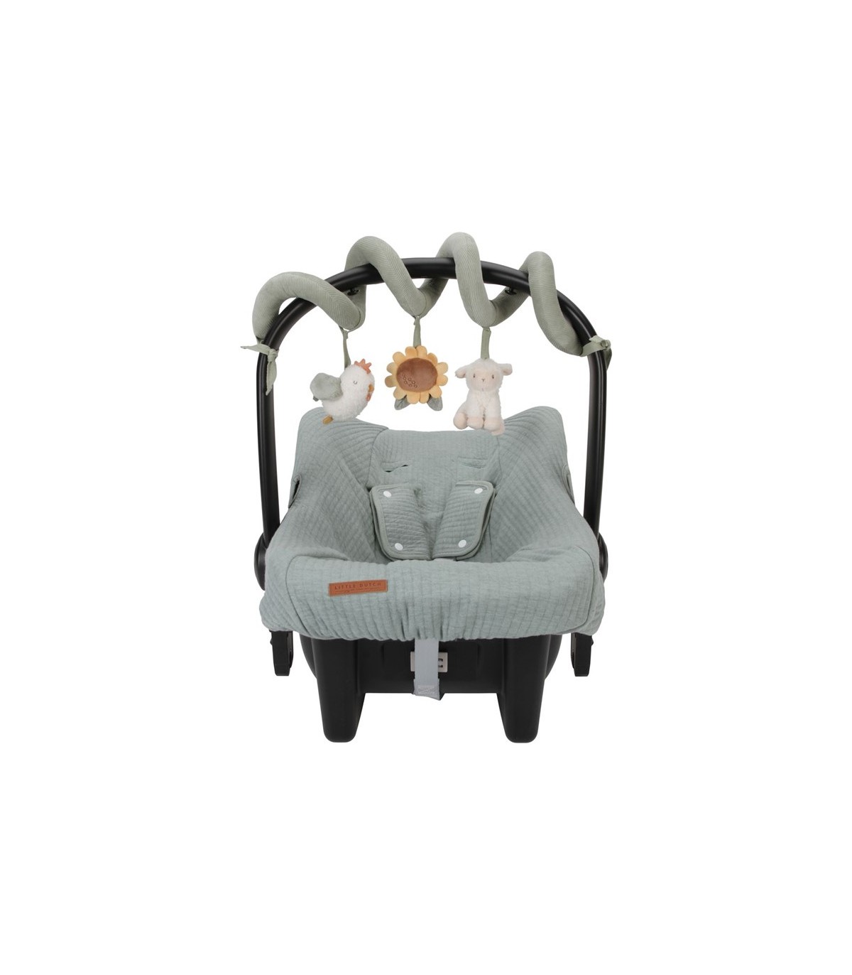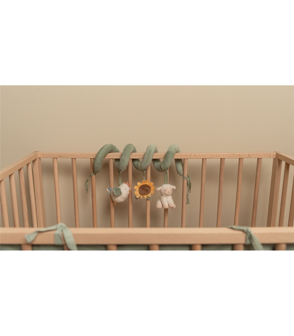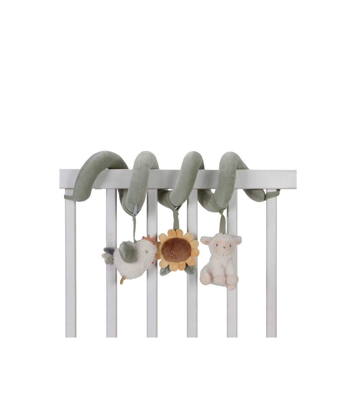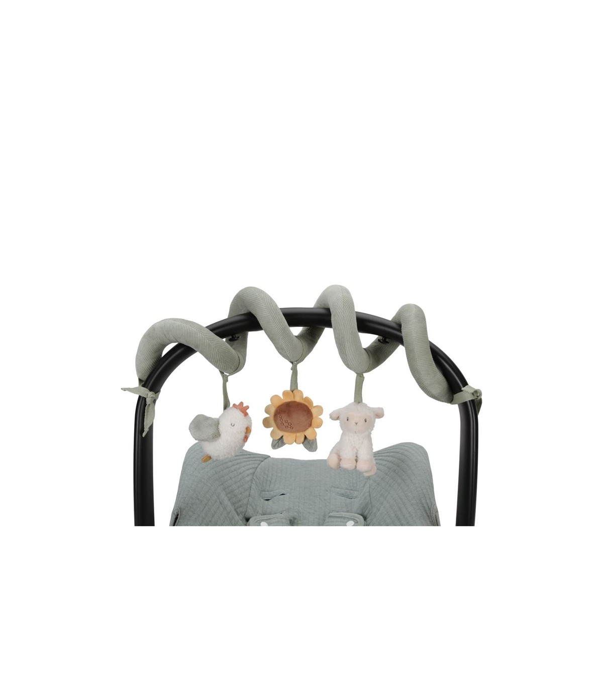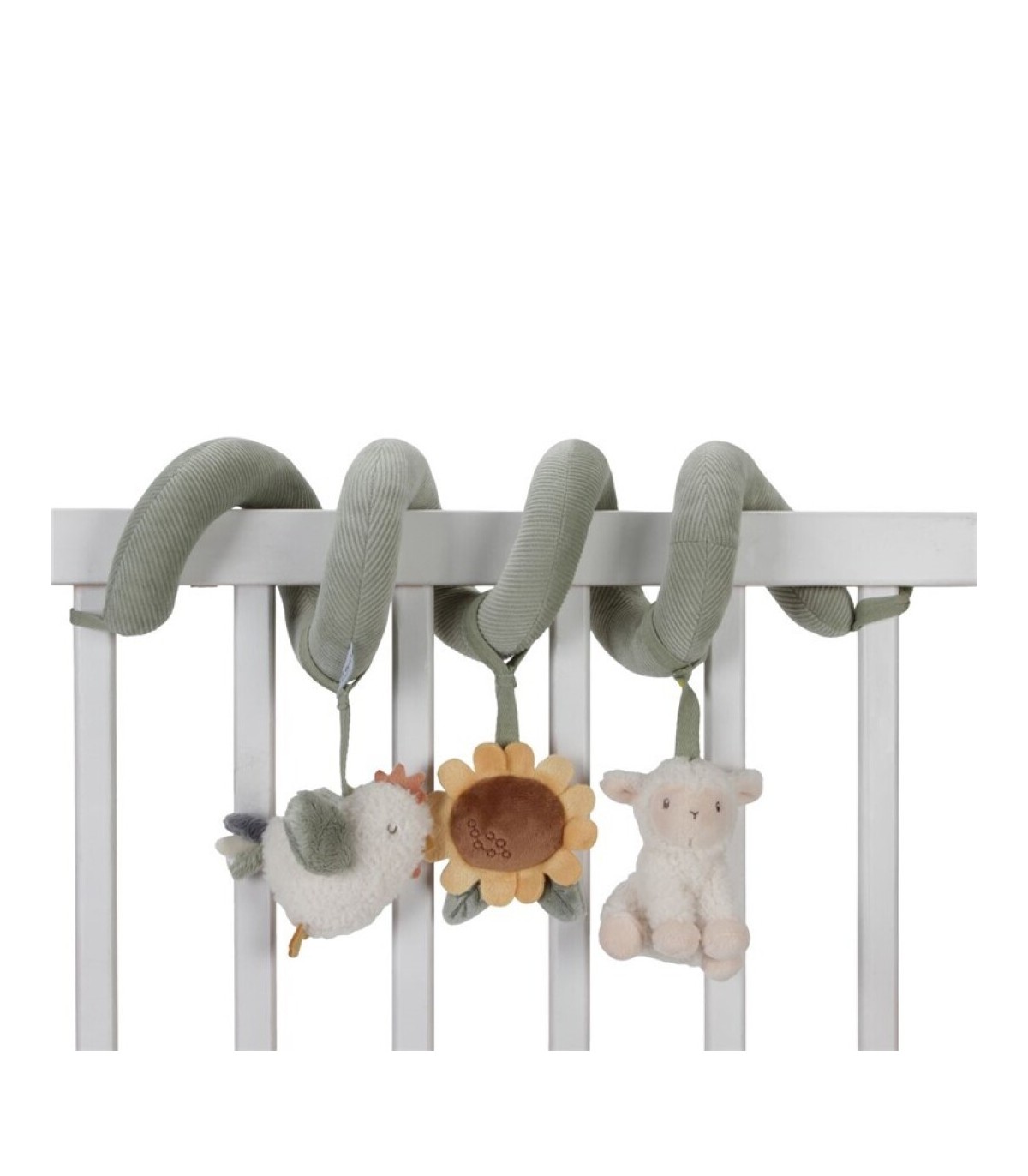 ¡Mira, siente y descubre! Esta divertida espiral de actividades mantendrá entretenidos a los bebés tanto en casa como mientras viajan. Conecta fácilmente este práctico juguete a cualquier cosa, desde una cuna hasta un parque o una silla para el coche. Esta espiral fortalece los sentidos y estimula la coordinación mano-ojo. La espiral de actividades está confeccionada en pana con algodón y presenta una pequeña oveja, una alegre gallina y un hermoso girasol.