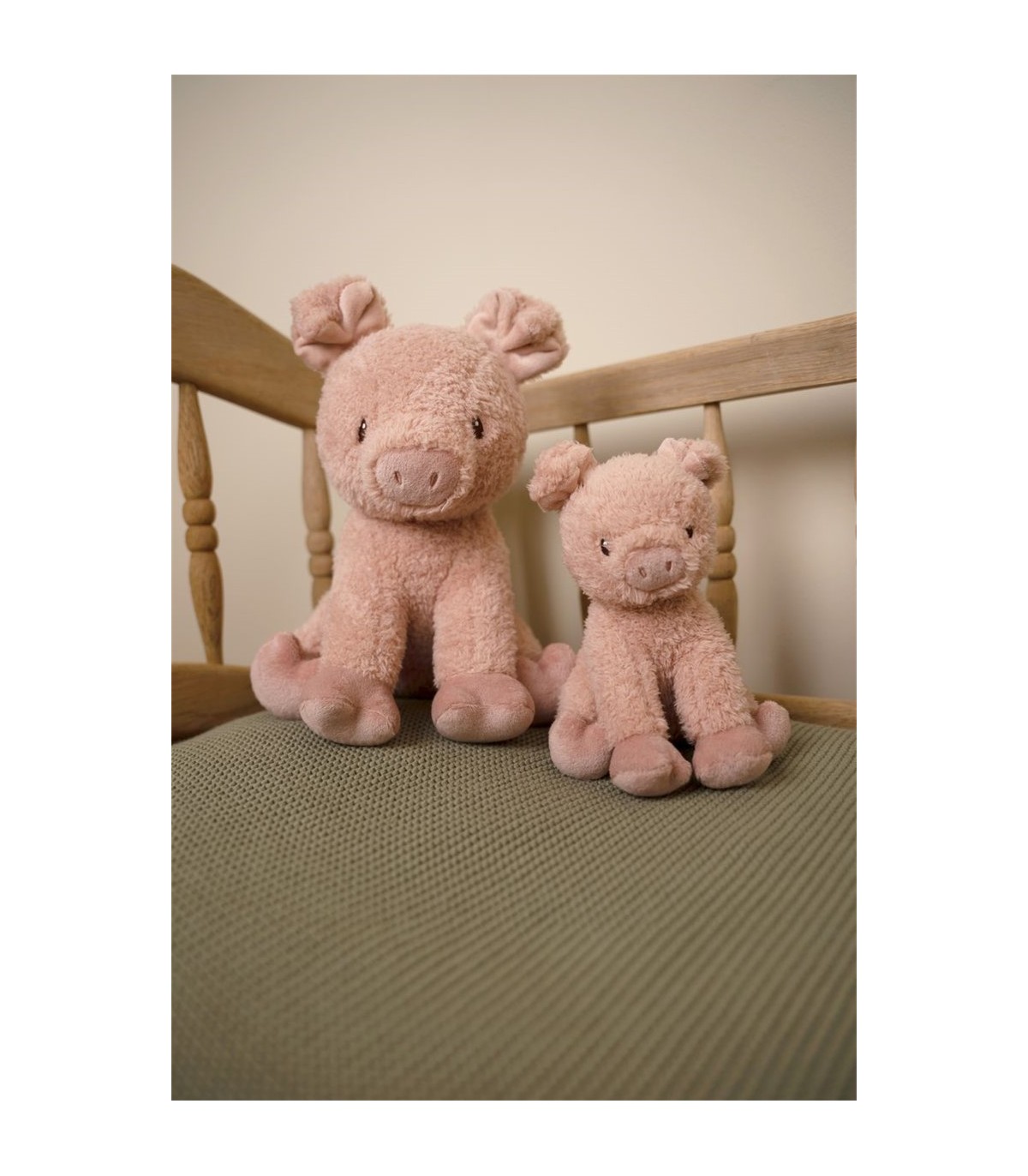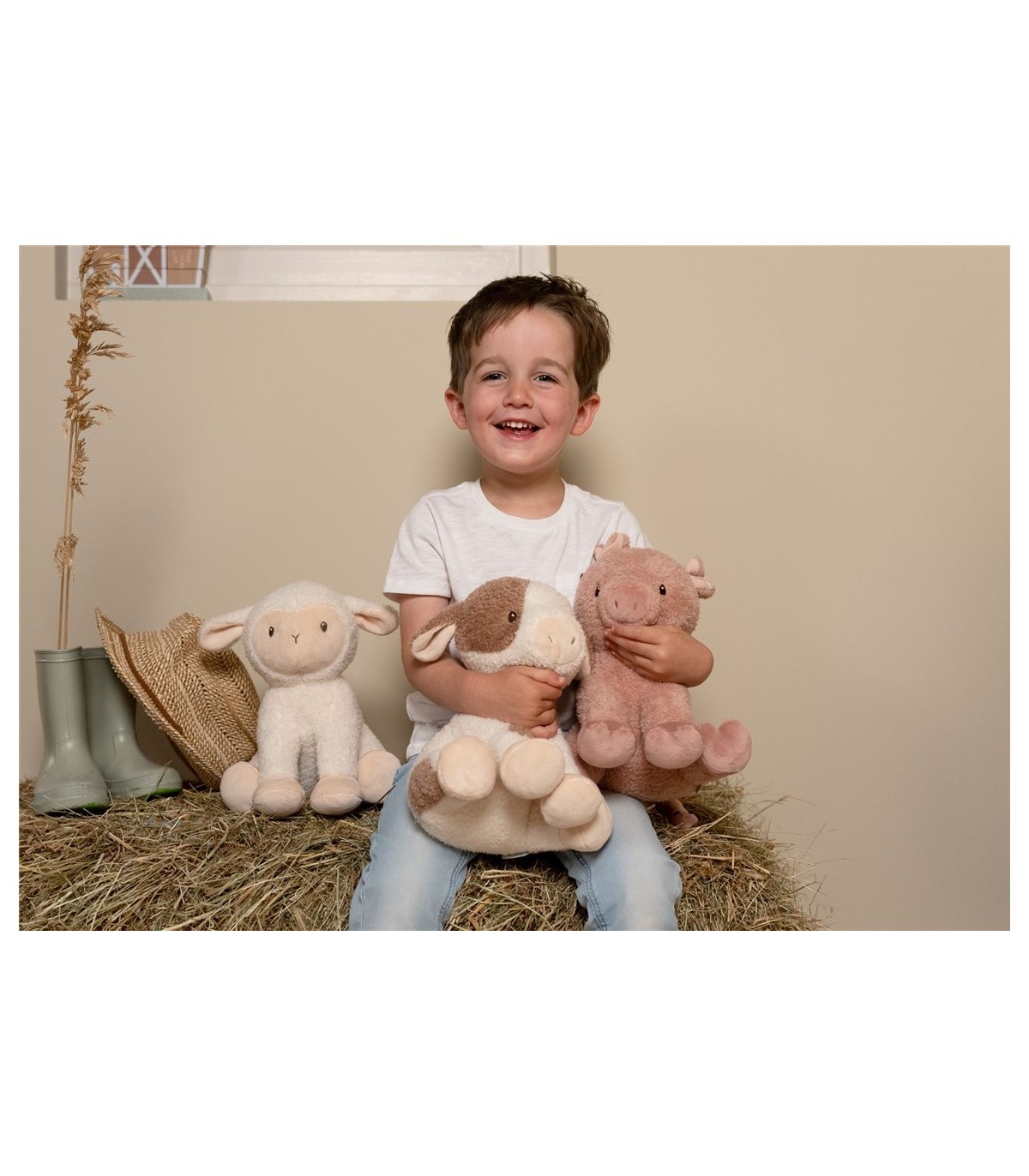 A este cerdito le encanta jugar. Le gusta quedarse contigo y puede ir a cualquier parte. Asegúrate de conocer también a los amigos de este lindo cerdo: la gallina, la vaca, la oveja y el ganso. Juntos viven aventuras en la granja. Este cerdito está hecho de materiales maravillosamente suaves, lo que lo hace increíblemente amigable y tierno.