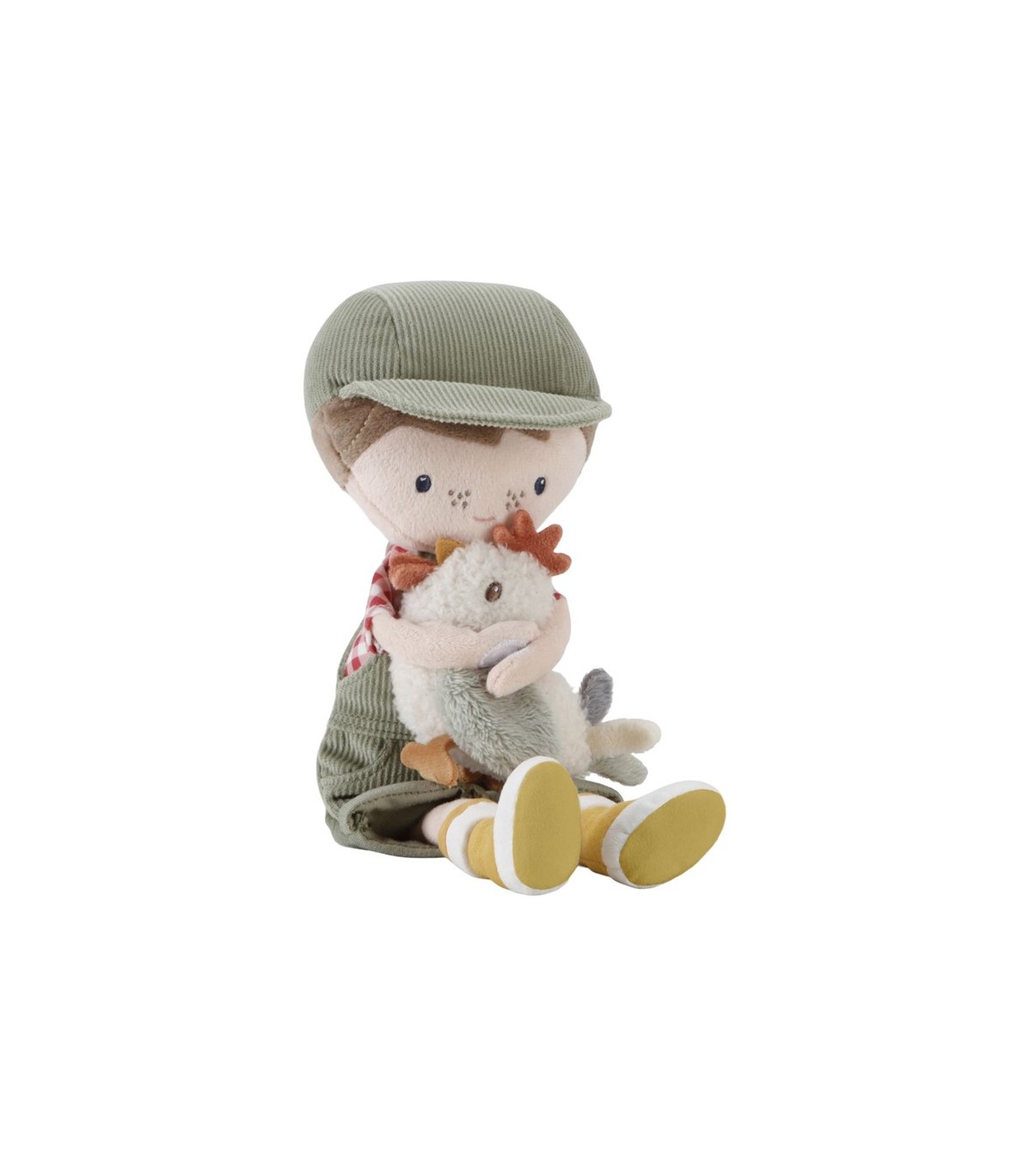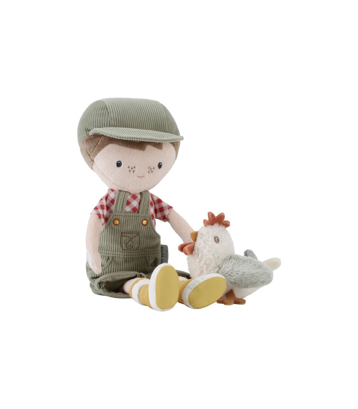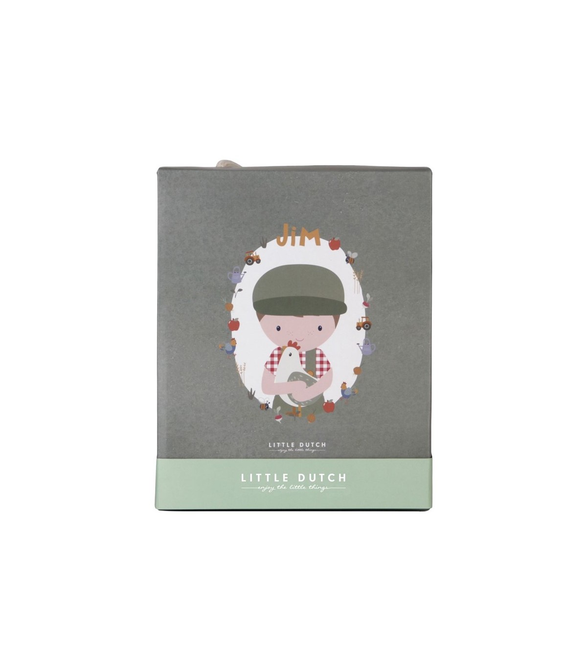 La nueva versión de Jim en su versión granjera de la colección Little Dutch. Esta vez Jim abraza a una gallina que puedes quitar y colocar de entre sus brazos. Viene presentado en una bonita caja, ideal para regalar.