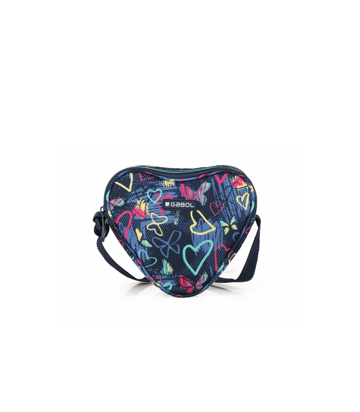 Bolso infantil en forma de corazón con cinta ajustable. Fabricado con material libre de PVC. Material impermeable. Medidas: 19x16,5x4 cm