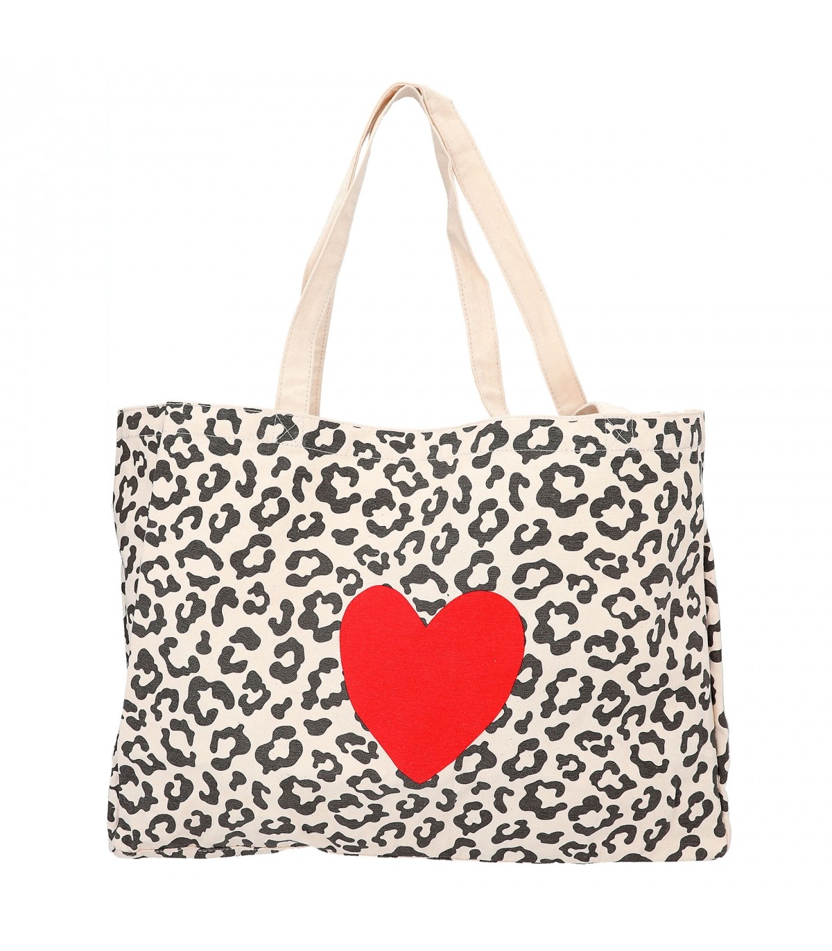 El dúo perfecto de bolsas para mamá e hija lo constituyen estas dos bolsas shopper en tamaño grande y pequeño de la colección Princess Mimi. Llevan el estampado tendencia de animal print y unos monísimos corazones. Hechas de algodón 100 por 100.