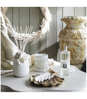 Altamente concentrado, el perfume reactiva el aroma de las decoraciones y objetos de yeso perfumados para los gabinetes Mathilde M. Déjate seducir por Secret de Santal, una fragancia voluptuosa con notas envolventes de sándalo, adornada con delicadas notas de jazmín.