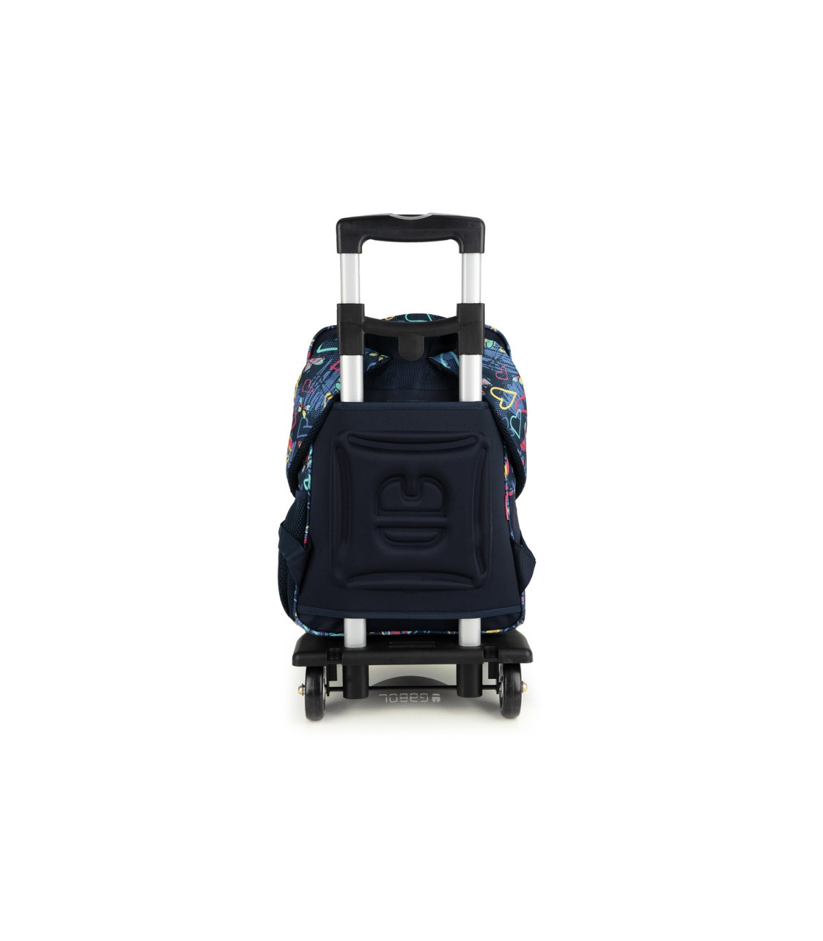 Mochila adaptable a carro con material impermeable. Su espalda termoformada ofrece, a su vez, comodidad y una protección ideal para amortiguar los objetos del interior. Base acolchada con protector de plástico de refuerzo. Hombreras acolchadas y reforzadas. Incluye identificador y organizador en su interior. Bolsillo en el lateral exterior Fabricada con material libre de PVC, con un tejido de alta densidad y mayor calidad. Medidas: 30x40x12 cm