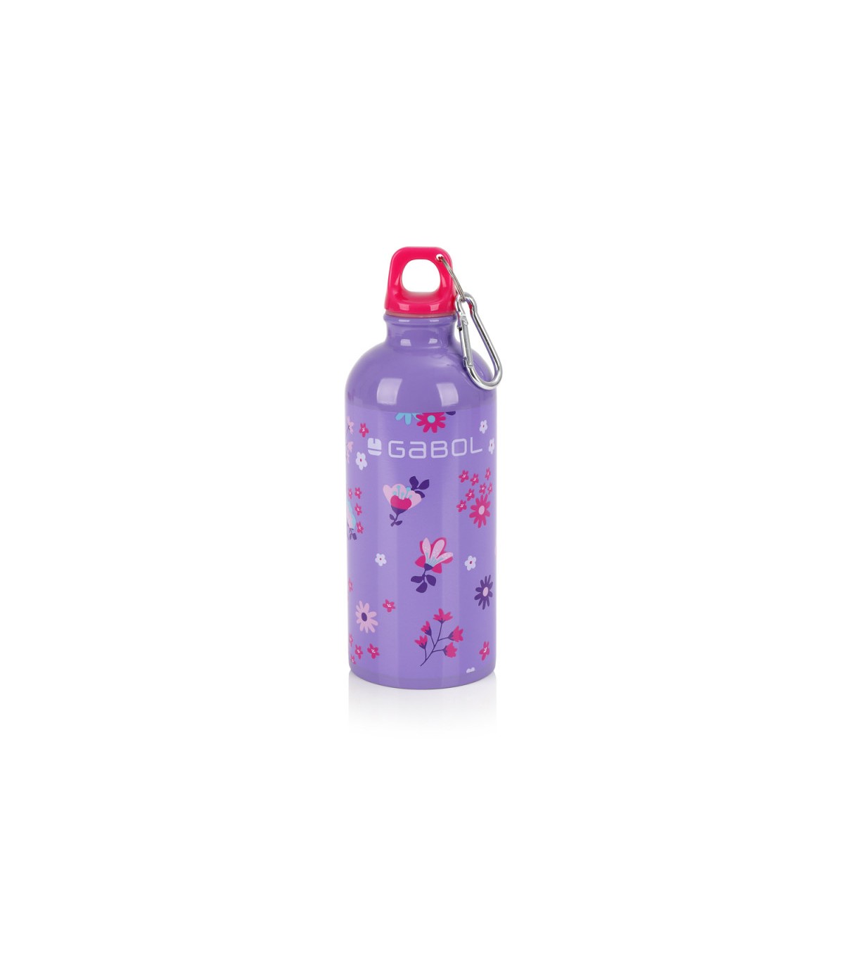Botella de acero inoxidable libre de BPA de 600ml. Cierre de rosca con mosquetón para poder engancharla. Fabricada con material libre de PVC. Medidas: 7x21x7 cm