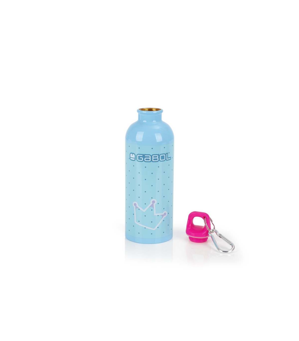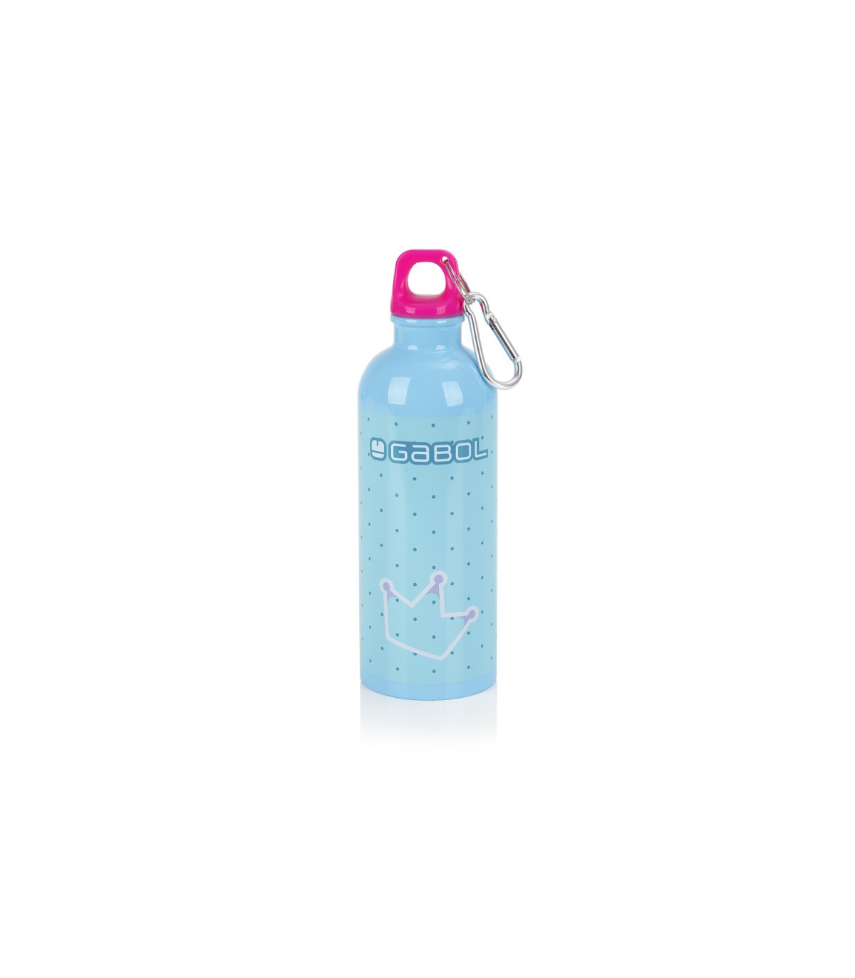 Botella de acero inoxidable libre de BPA de 500ml. Cierre de rosca con mosquetón para poder engancharla. Fabricada con material libre de PVC. Medidas: 6x21x6 cm