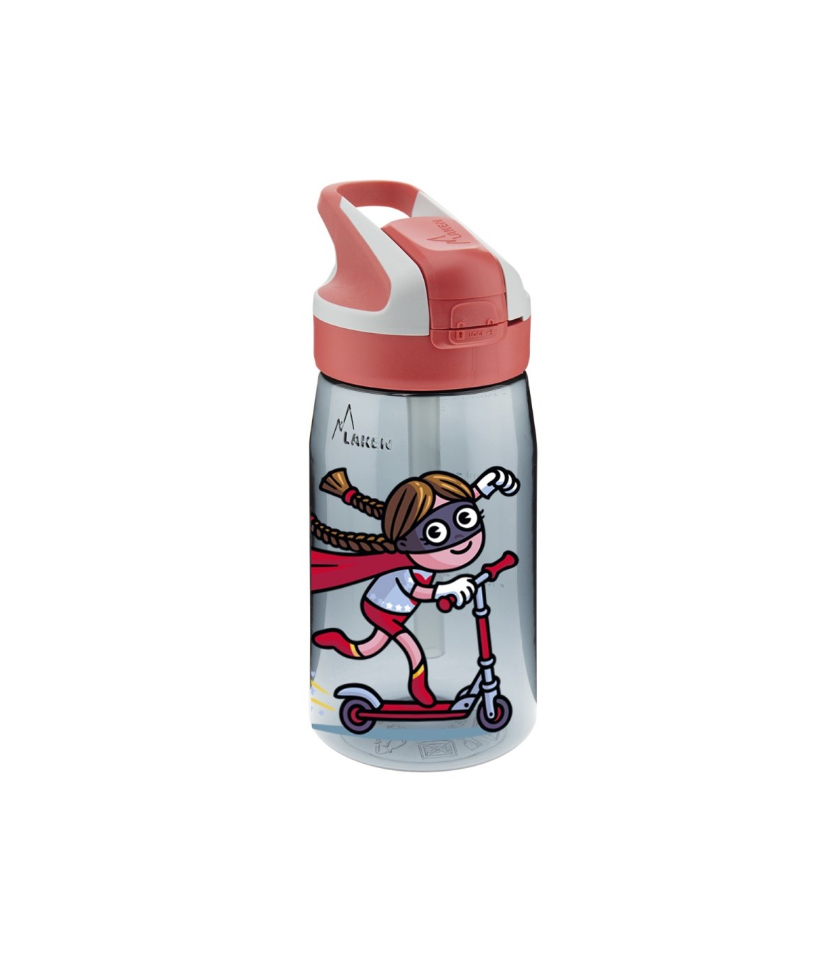 Las botellas reutilizables más ligeras de LAKEN ofrecen varias opciones de cierre. Si las eliges con tapón automático Summit, con cierre de seguridad para evitar aperturas involuntarias, podrás disfrutar de la comodidad de abrir tu botella con una sola mano y beber sin inclinarla. ¡Superhéroes, a sus patinetes! Botella Super Scooter, by Txema Sanz.