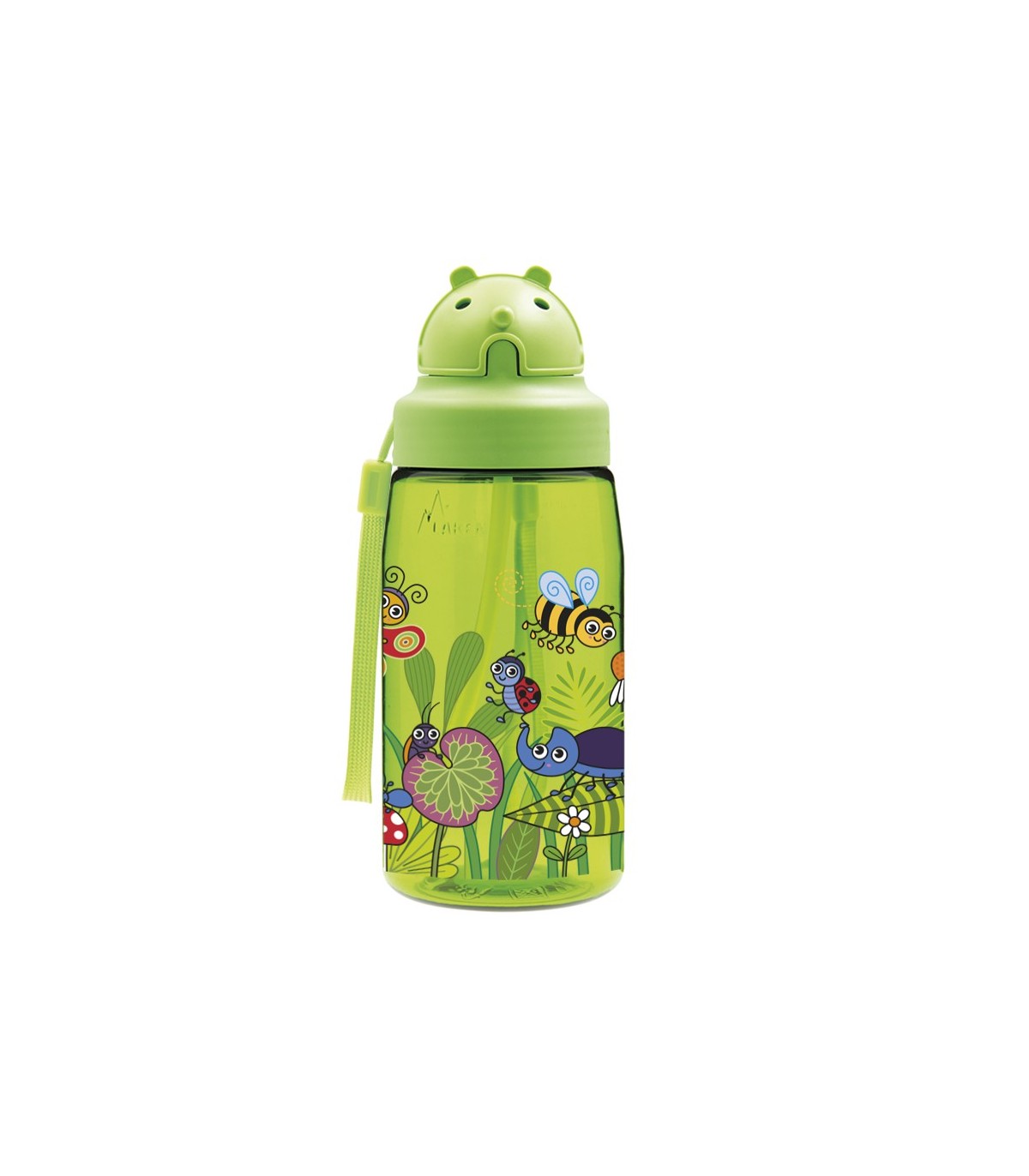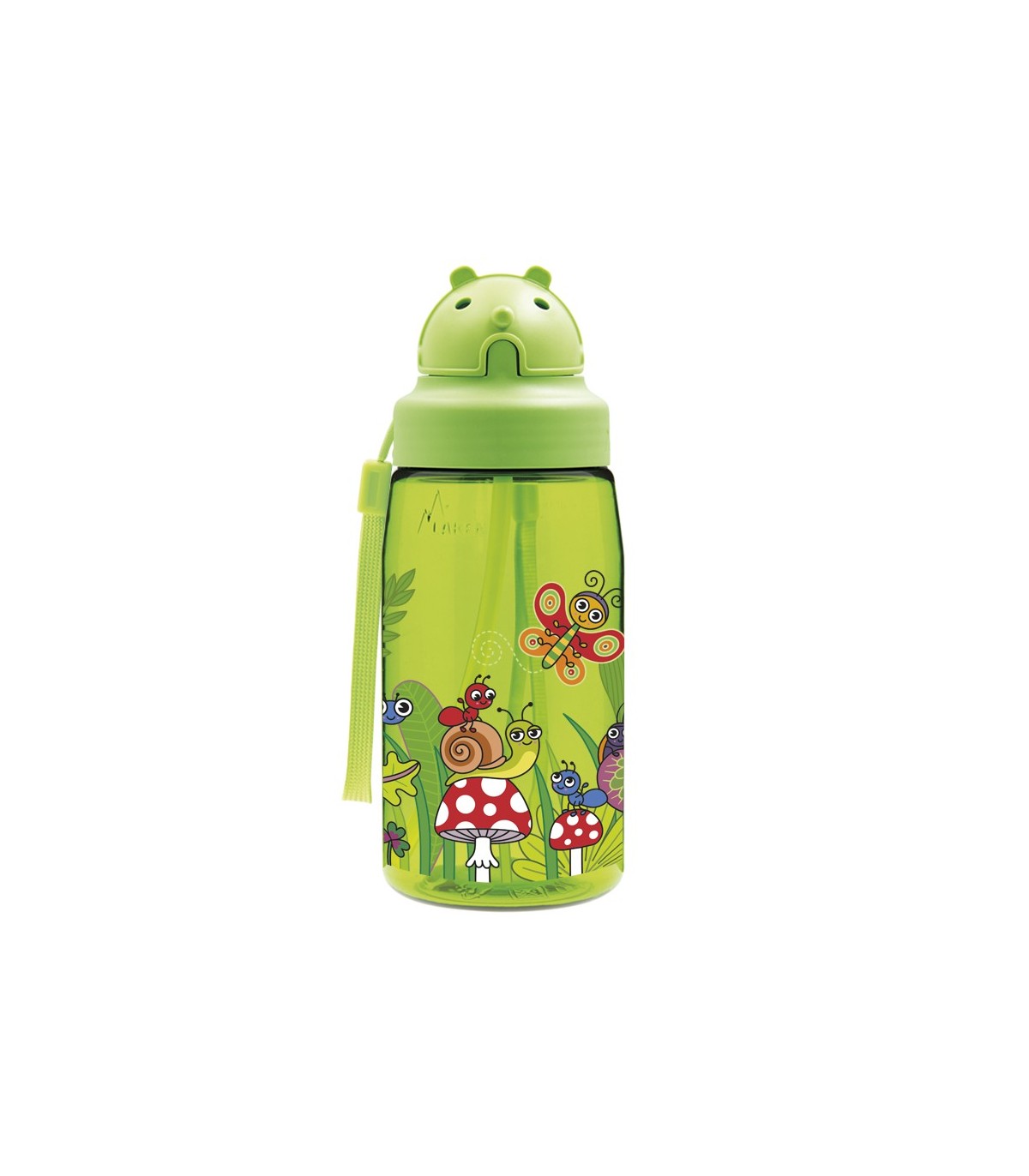 Botella infantil de Tritan equipada con tapón OBY, perfecto para que puedan abrirlo y cerrarlo los peques sin ninguna ayuda. Dispone de una pajita en el interior que llega hasta el fondo de la botella para que no sea necesario alzarla para poder beber. Completamente hermética, muy ligera y libre de sustancias nocivas. ¡Descubre a los Bichitos más simpáticos del bosque!, by Txema Sanz.