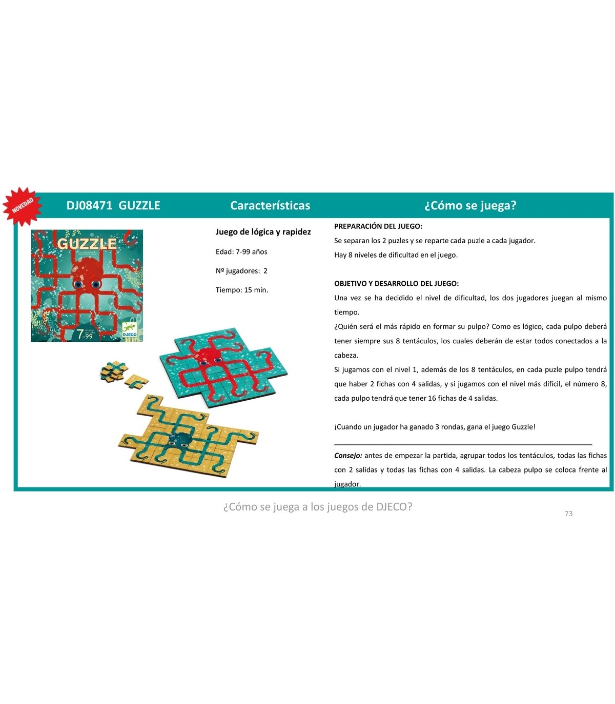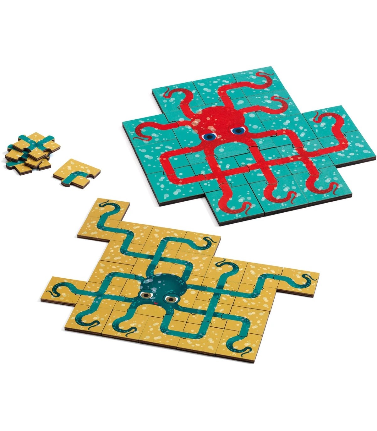 Un juego táctico en el que hay que ser el primero en hacer un pulpo perfecto. ¿Quién será el más rápido en formar su pulpo? Como es lógico, cada pulpo debe tener 8 tentáculos y todos ellos deben estar unidos a la cabeza. Atención: ¡no hay que hacerse un lío con los tentáculos por las prisas!