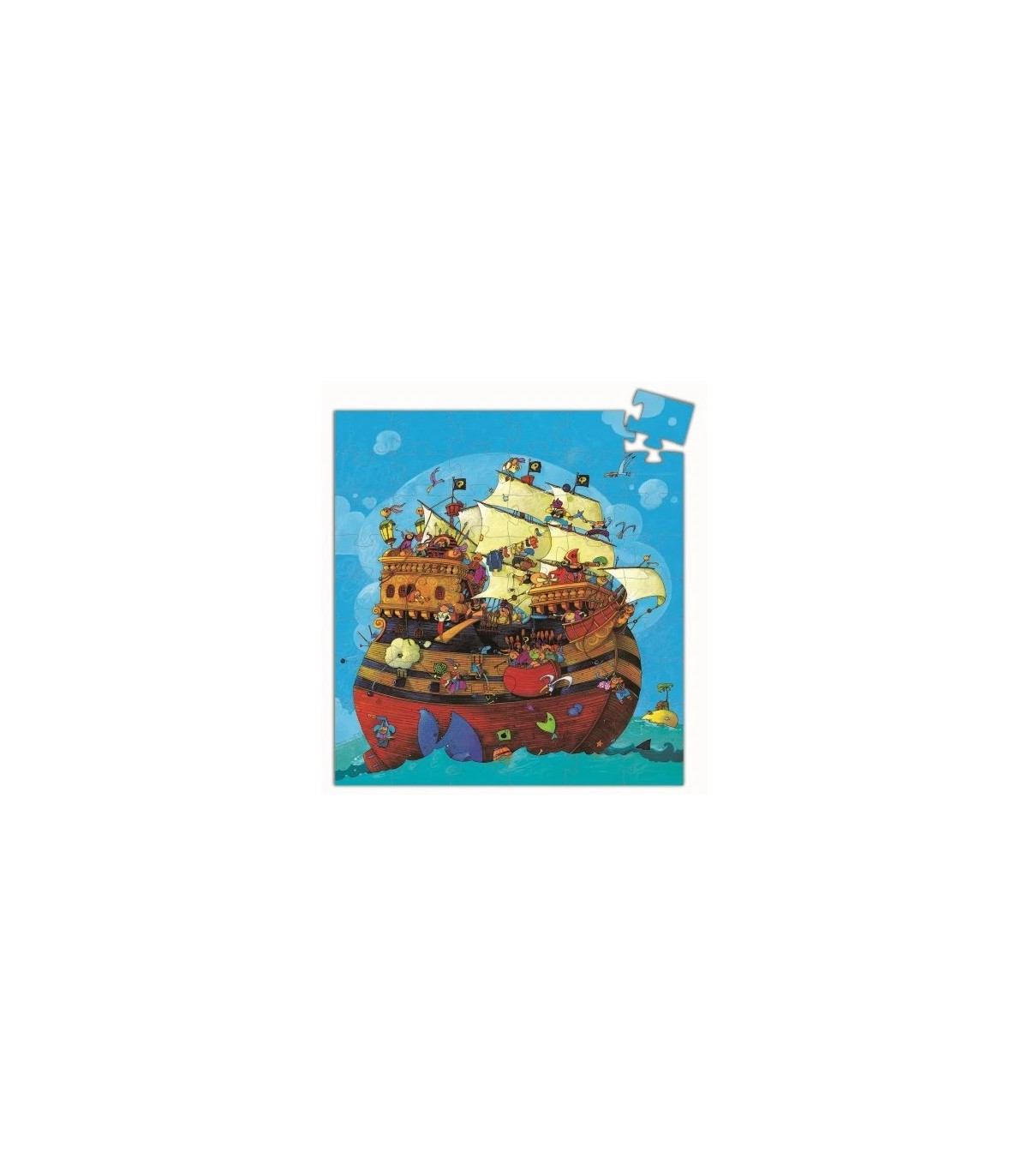 -Subamos al barco de Barbarroja y vivamos la vida de un pirata. Un colorido puzle de 36 piezas en una elegante caja con forma de barco.