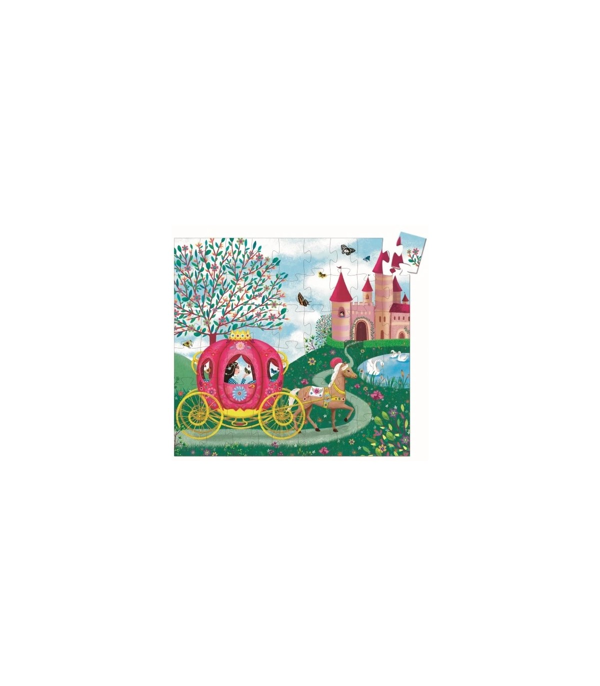 -La princesa Elise llega a su castillo en su hermosa carroza. Un hermoso puzle de 54 piezas en una elegante caja con forma de carroza.