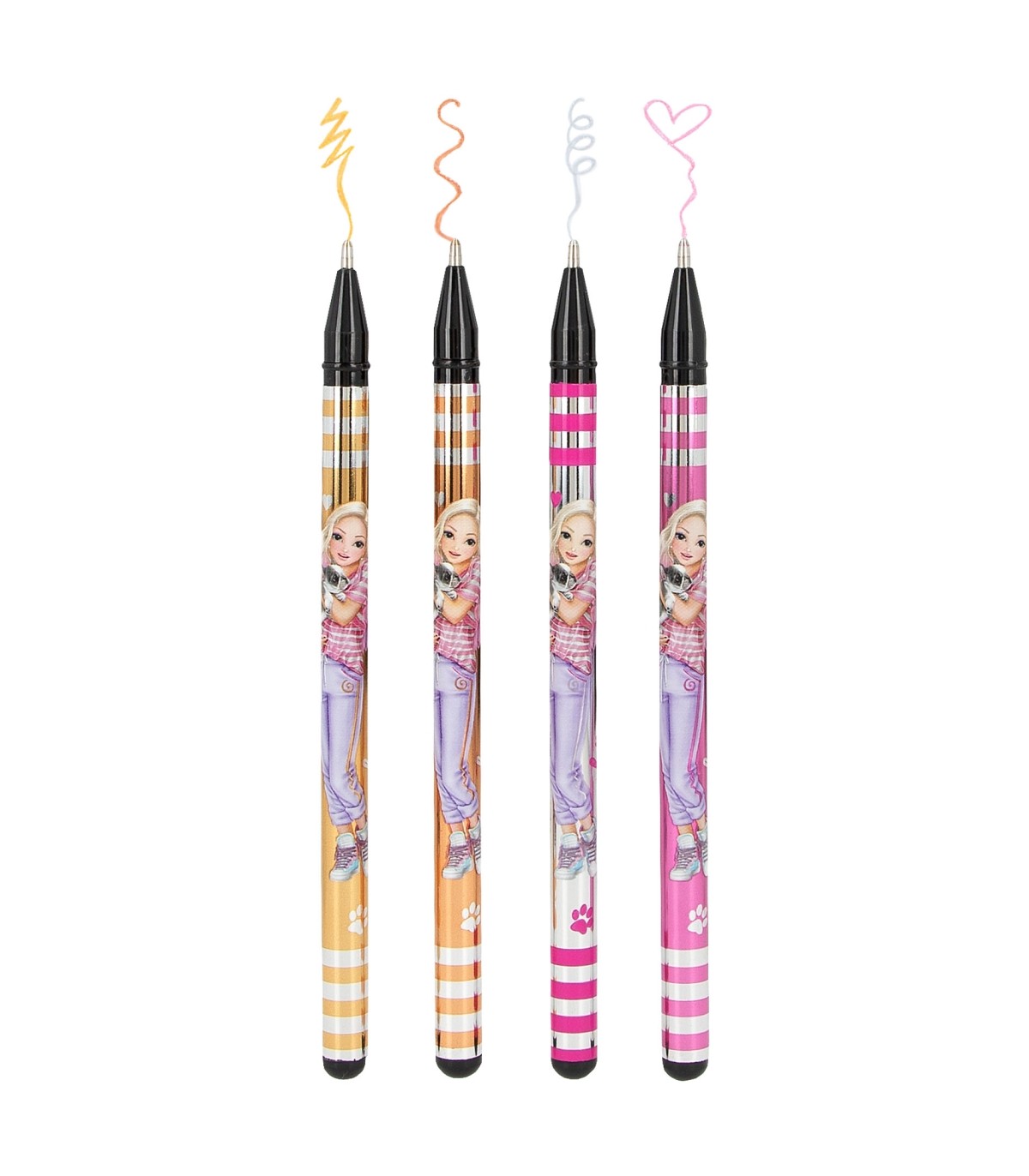 Para divertirse a lo grande con los rotuladores de TOPModel de purpurina metalizada color oro, plata, bronce y oro rosa. Los rotuladores están adornados con una preciosa imagen de una modelo con un perro y se venden en un estuche transparente con confeti en la tapa. Las minas no son recambiables.