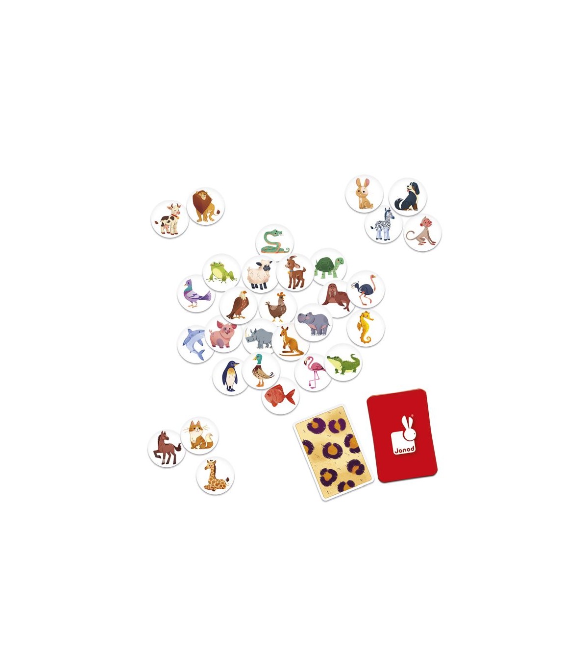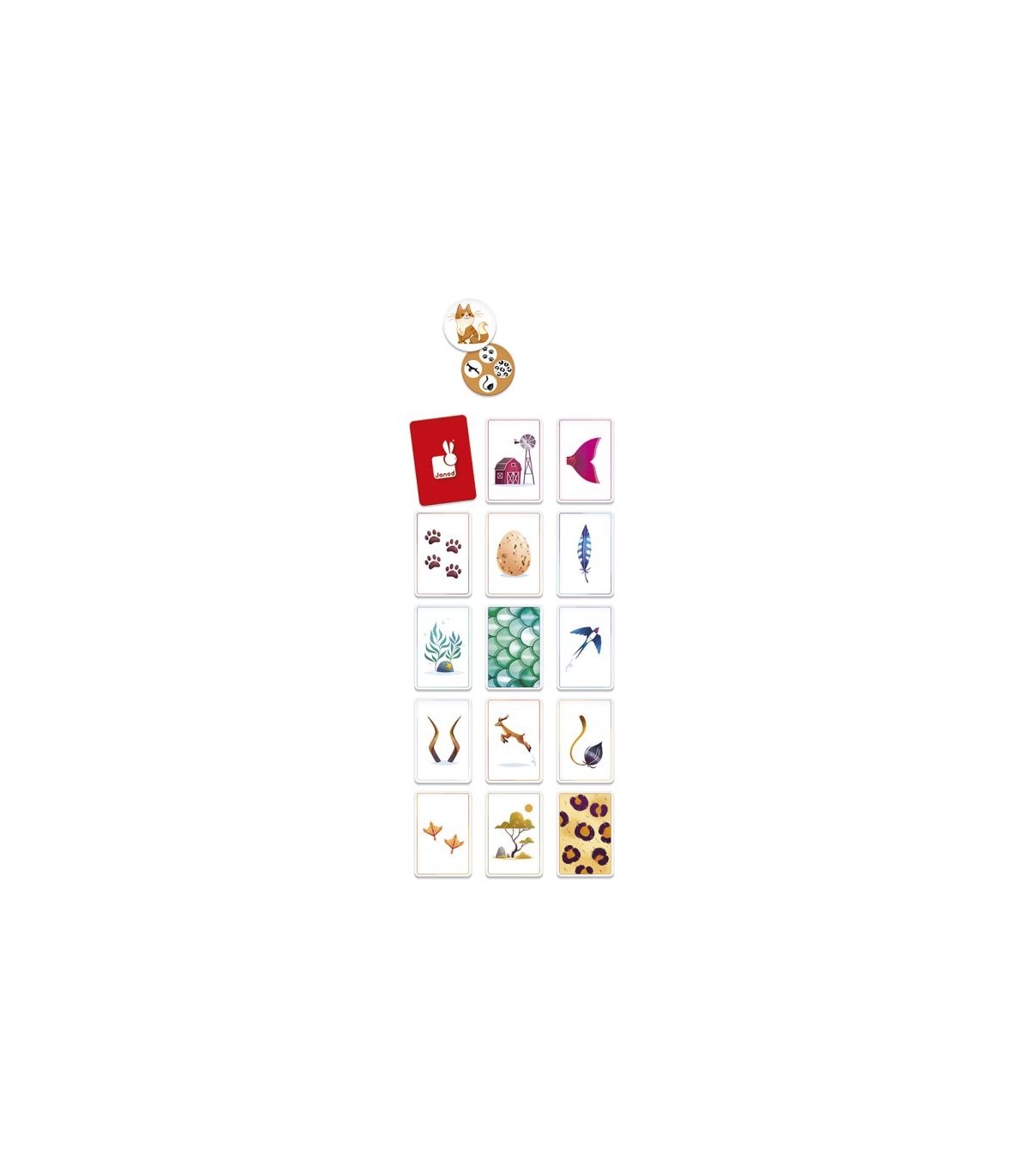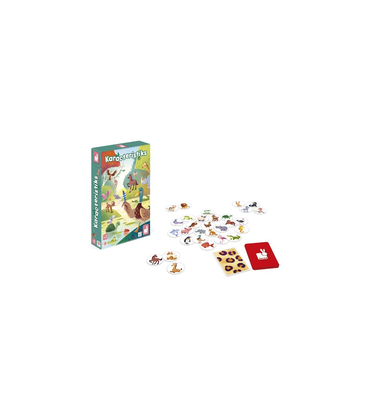 ¡Actúa con la máxima rapidez para conseguir tantos animales como sea posible! En este juego de velocidad, los niños de a partir de 3 años tendrán que coger un máximo de cartas de animales según una característica específica. ¡Aprenden más sobre los animales y sus características mientras juegan! ¿Qué animal tiene escamas? ¿Qué animal pone huevos? ¡Descúbrelo en familia o con amigos con este divertidísimo juego de cartas! El desarrollo del juego es muy simple: ponemos las 30 cartas de animal sobre la mesa, boca arriba. Las cartas de características se apilan boca abajo. A continuación, le damos la vuelta a la primera carta de característica. A la voz de «¡ya!», cada jugador debe atrapar un máximo de cartas de animal correspondientes a la característica indicada: ¡hay que actuar con rapidez!