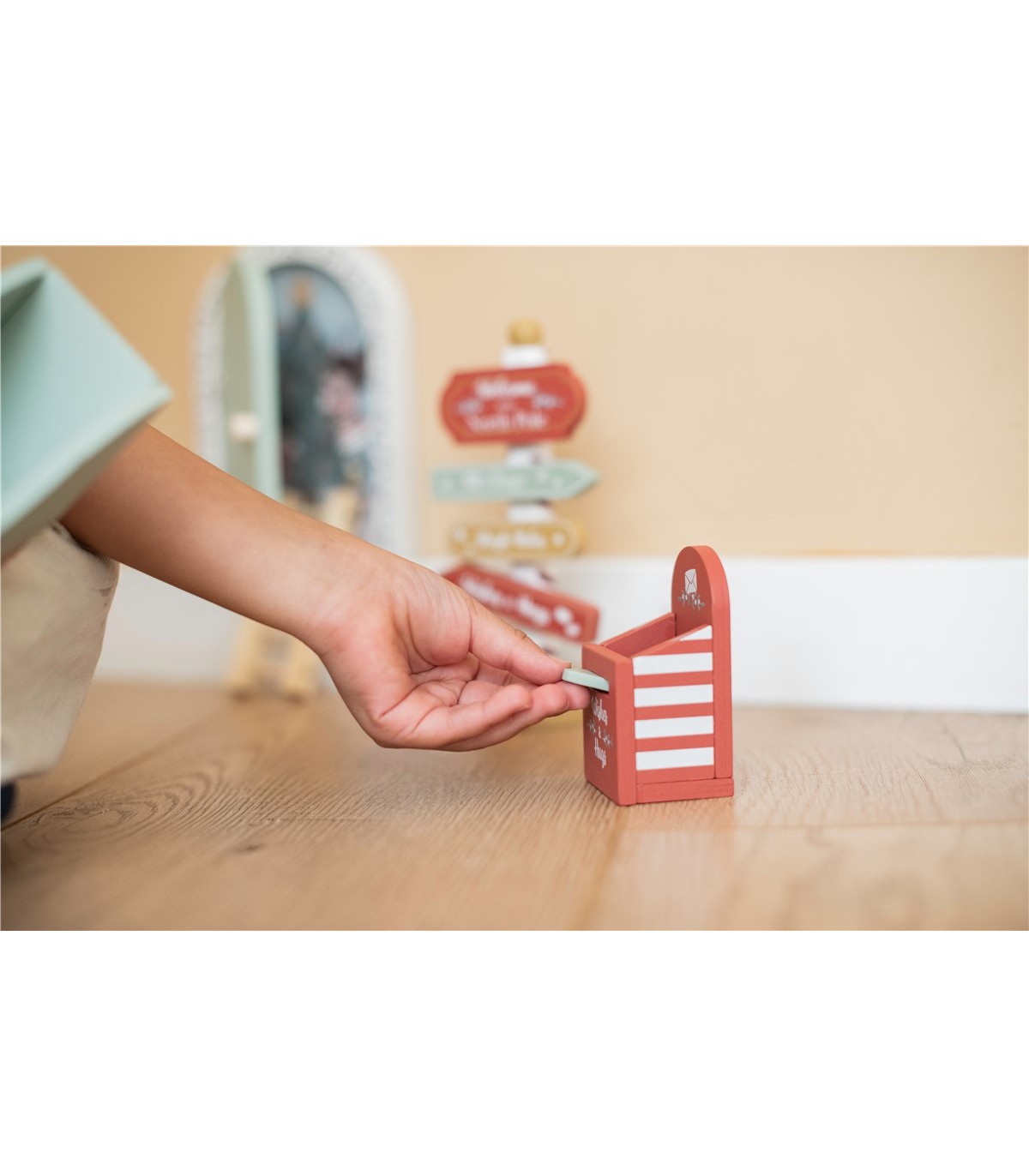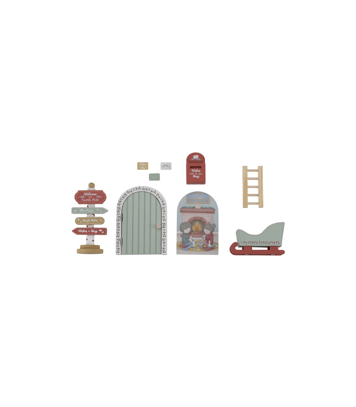 ¡Añade un toque de diversión navideña a tu hogar con la puerta de Navidad con accesorios! Con este divertido set, los niños pueden crear su propia escena navideña. Coloca la puerta con ilustración de inserción de doble cara en un rodapié y añade los demás elementos, como un adorable buzón con correo navideño, un minitrineo, escalones hasta la puerta y un letrero divertido. Deja fluir la creatividad y disfruta juntos del ambiente festivo de la Navidad.