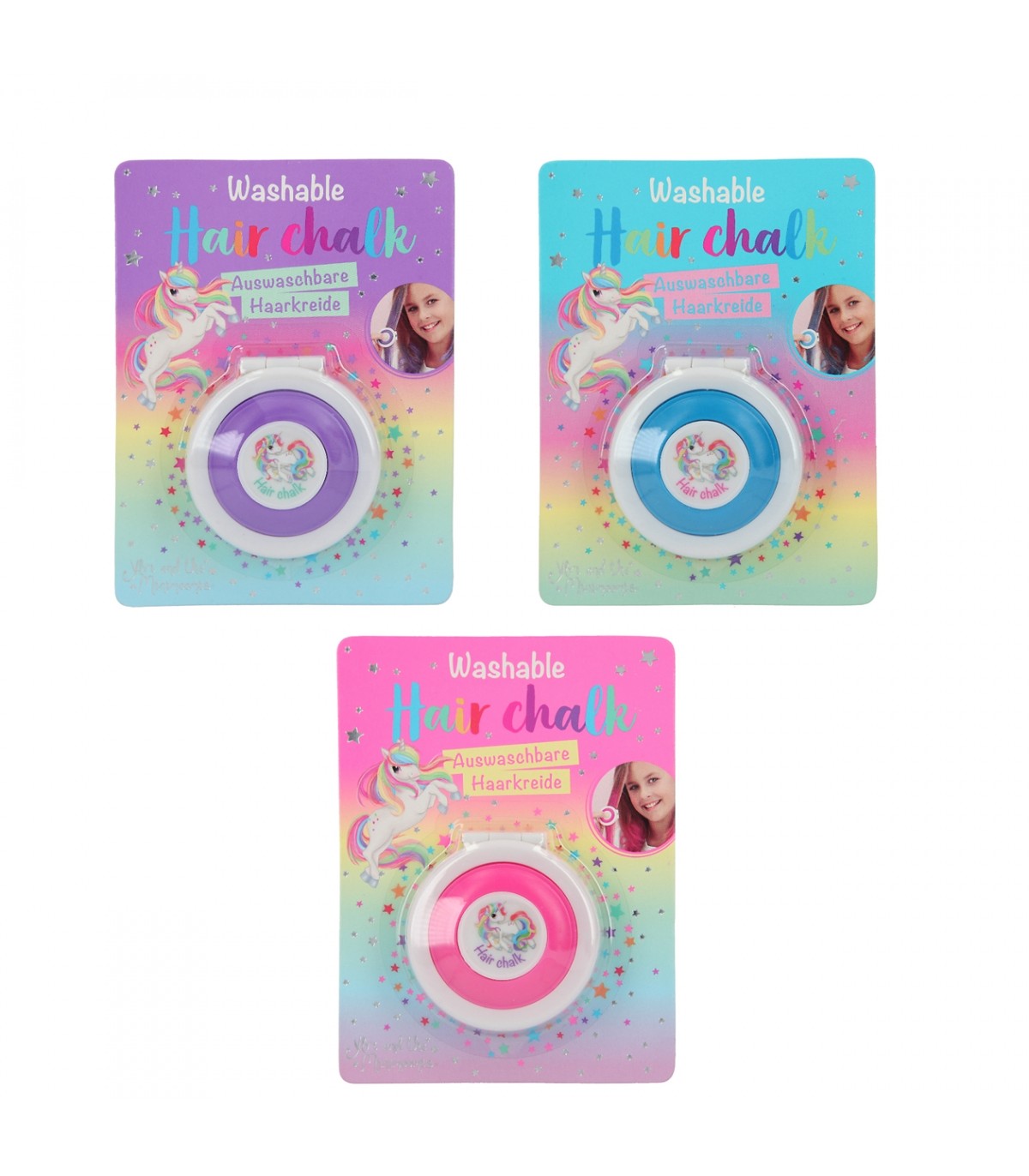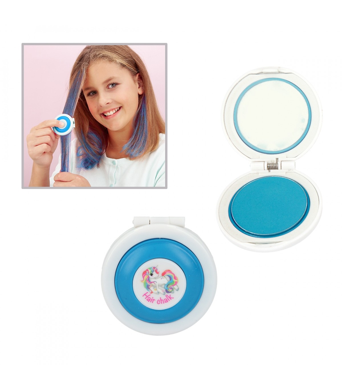 ¡Con la tiza para el pelo de Ylvi and the Minimoomis vas a lucir el colorido que quieras! Es muy fácil de aplicar gracias a la esponja incluida y se elimina fácilmente al lavar el pelo. Disponible en tres colores: rosa, lila, turquesa.